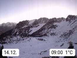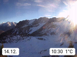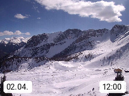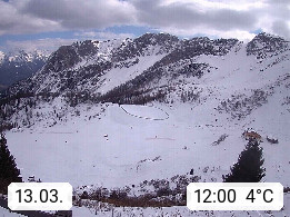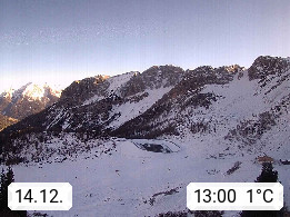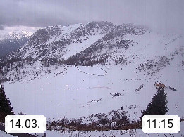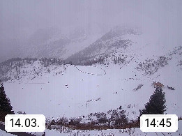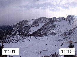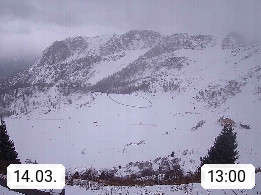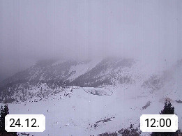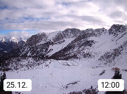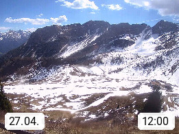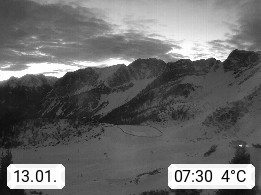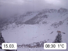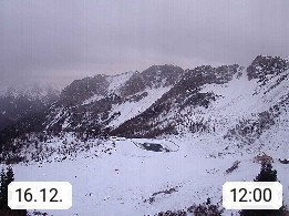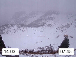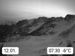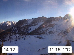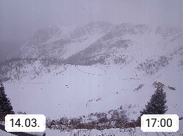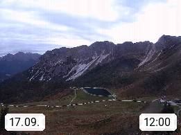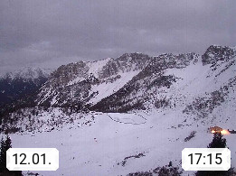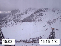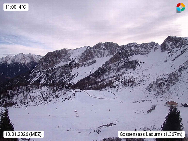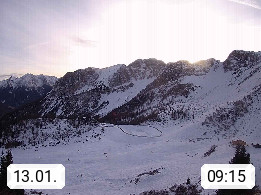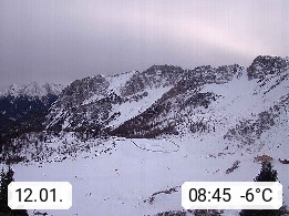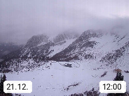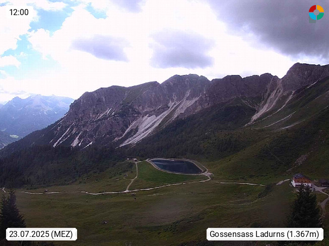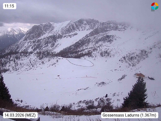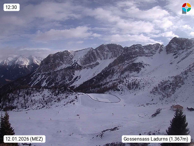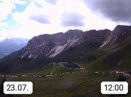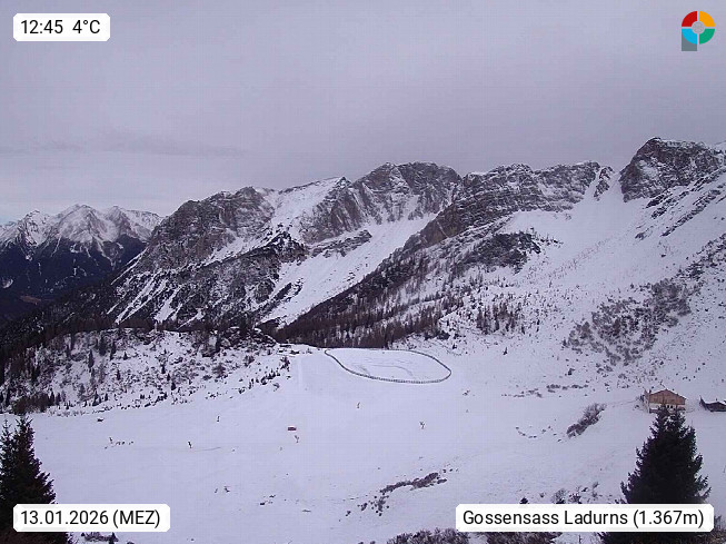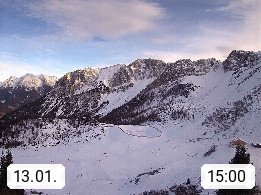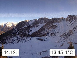 I 39040 Gossensass Ladurns (Colle Isarco) am Brenner (Brennero) 1.240m, Dorf in der Gemeinde Brenner (Brennero) in der Bezirksgemeinschaft Wipptal nördlich von Sterzing (Vipiteno). Blick von der Bergstation im Ski und Wandergebiet Ladurns 2.010m, Richtung Nordost auf das Felsmassiv des Pflerscher Tribulaun 3.097m in den Stubaier Alpen in Tirol, an der Grenze von Südtirol zu Österreich. Präsentiert von https://www.ladurns.it/de.