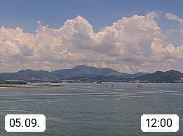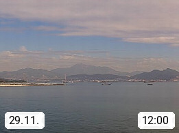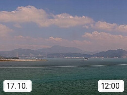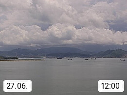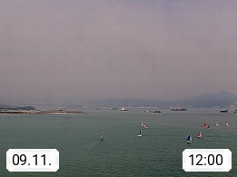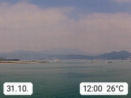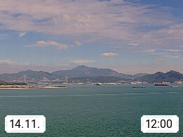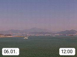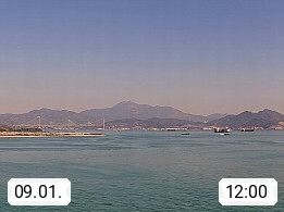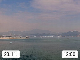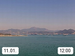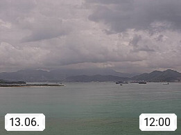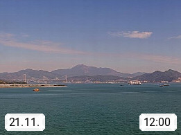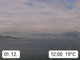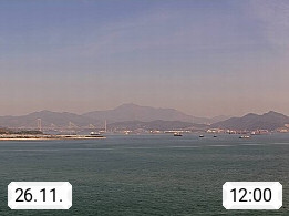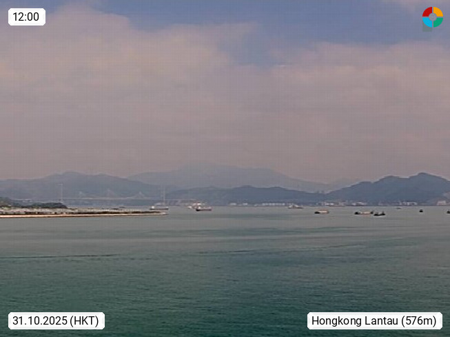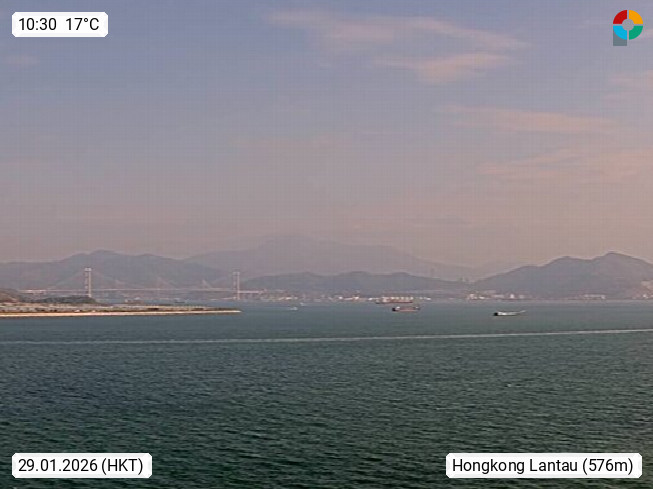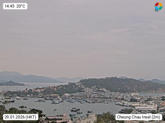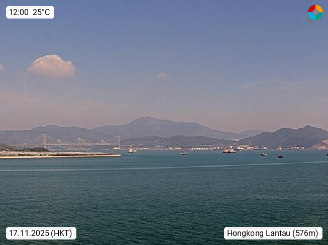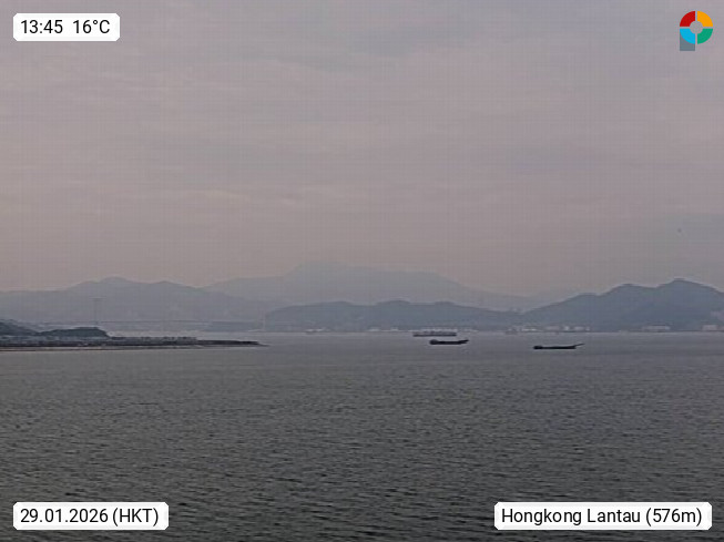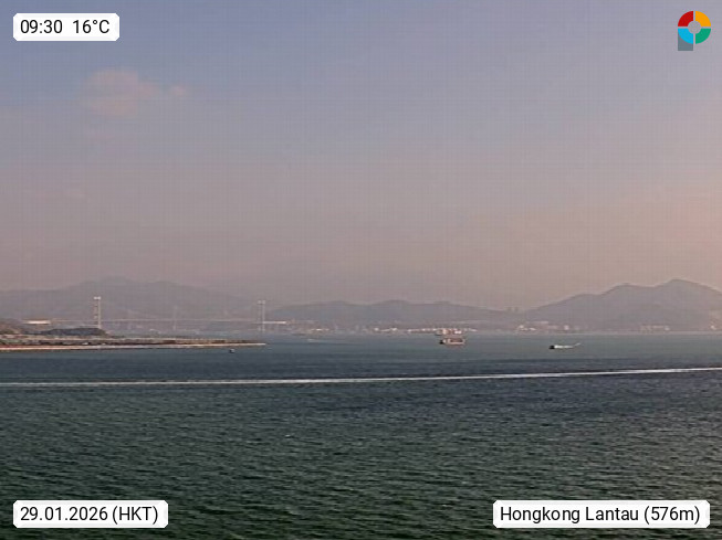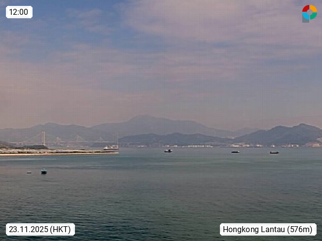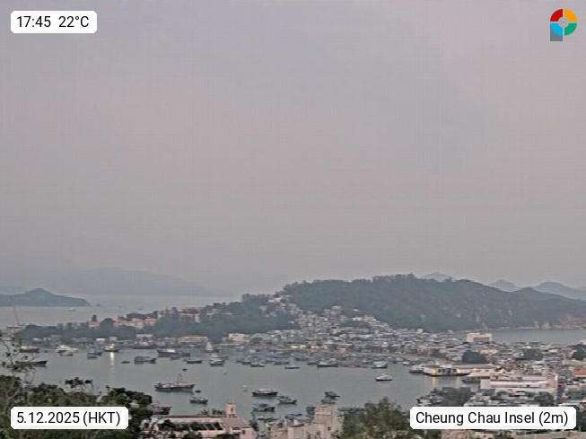 Hongkong 2.755 km² seit 1997 Hong Kong Special Administrative Region of the People Republic of China, eine Sonderverwaltungszone an der Südküste der Volksrepublik China. Hongkong liegt an der Mündung des Perlflusses in das südchinesische Meer und erstreckt sich über eine Halbinsel und rund 260 dazu gehörenden Inseln. Hongkong ist hinsichtlich der Bevölkerungszahl mit rund 7 Mio Einwohnern die drittgrößte Metropolregion der Volksrepublik China. Blick von Peng Chau über die Pennys Bay Richtung Nord Ost, im Hintergrund die Insel Lantau 146 km². grösste Insel Hongkongs gegenüber der Mündung des Perlfluss. Links im Vordergund sieht man Disneyland Hongkong. Präsentiert von https://www.hko.gov.hk/.