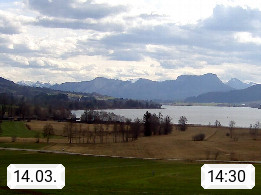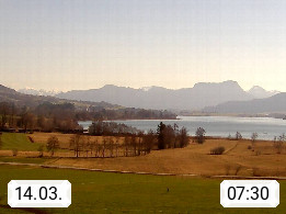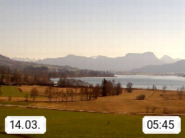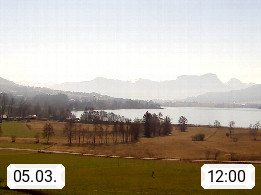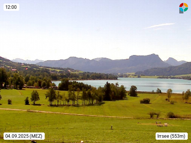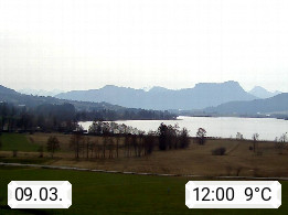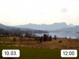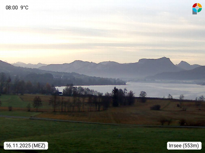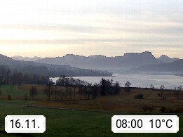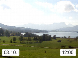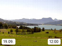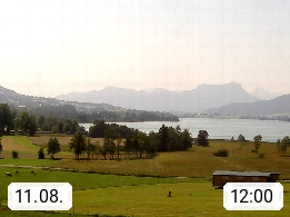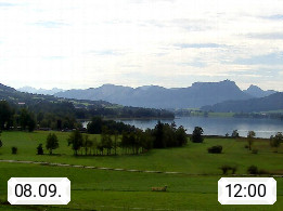 Irrsee 553m, hat eine Wasserfläche von 3,5 km² und steht unter Naturschutz. Der Irrsee auch Zellersee genannt, gilt als der wärmste See des Salzkammergutes. Die Gemeinden rund um den Irrsee sind Oberhofen - Zell am Moos - Tiefgraben. Blick Richtung Süden zum Schafberg 1.782m. Präsentiert von http://www.sunnhof.at.