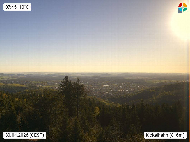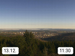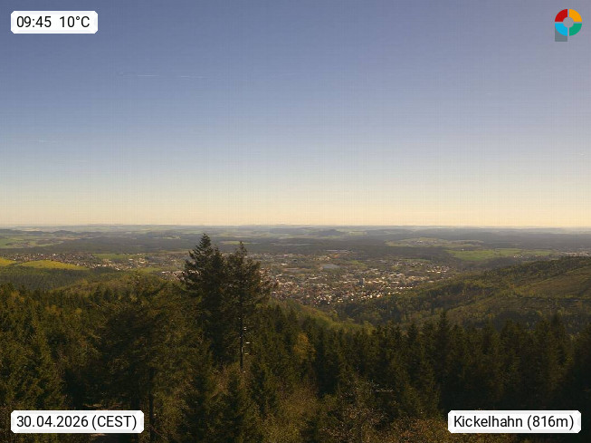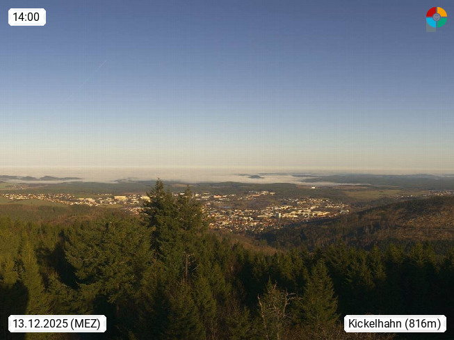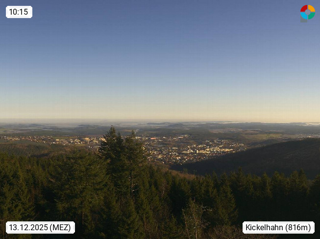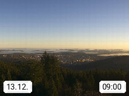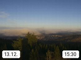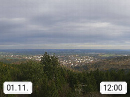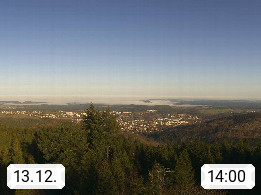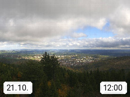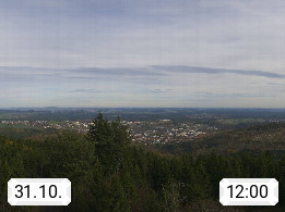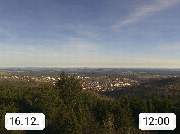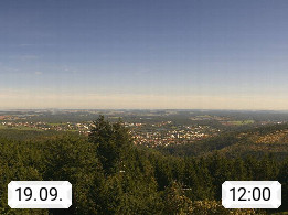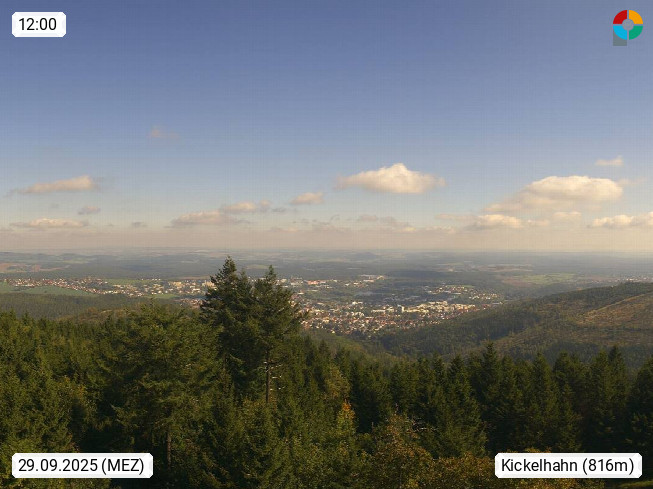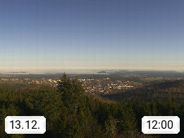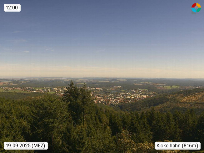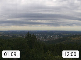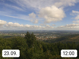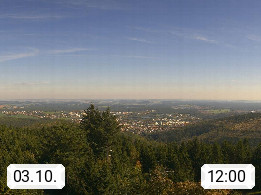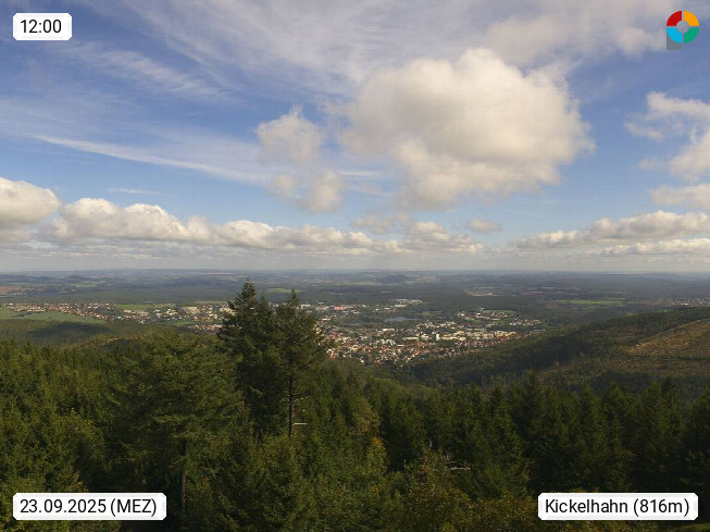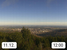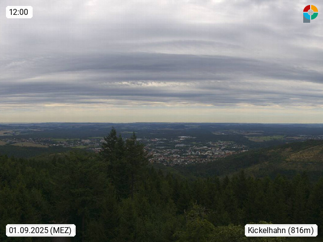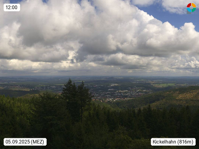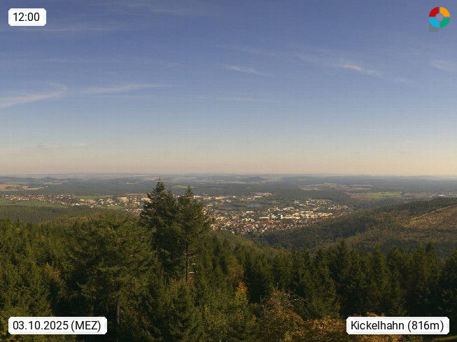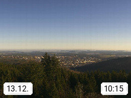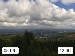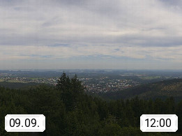 D 98693 Ilmenau Kicklehahn 861m, Goethe und Universitätsstadt im Tal der Ilm am Nordrand des Thüringer Waldes. Panoramablick vom Kickelhahnturm 888m Richtung Westen zum Großen Finsterberg 944m, den Schneekopf 978m und weitere Berge entlang des Rennsteigs, einem 170 km langen Kammweg. Präsentiert von https://www.ilmenau.de/.
