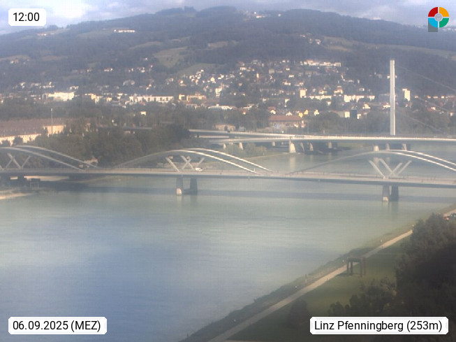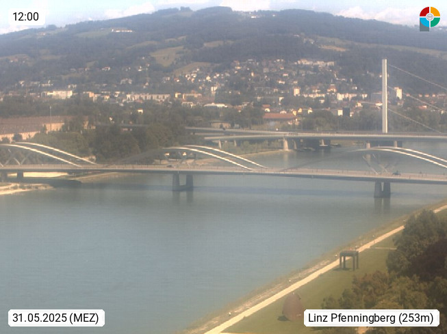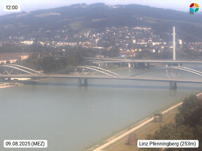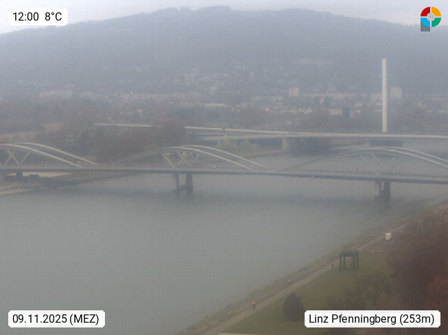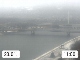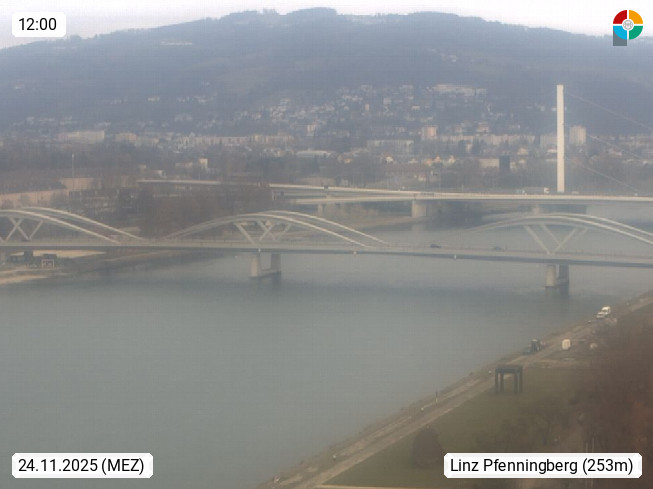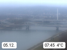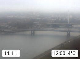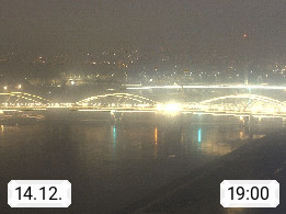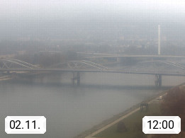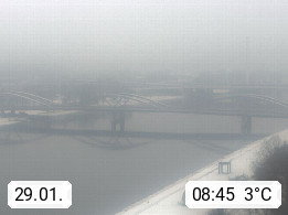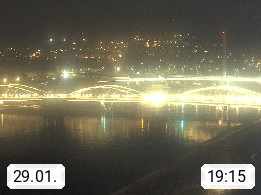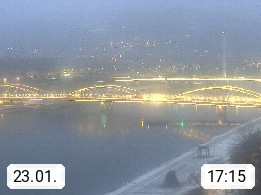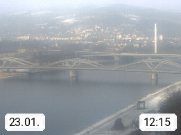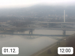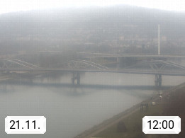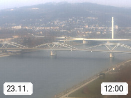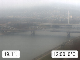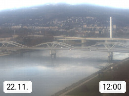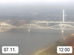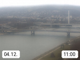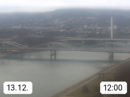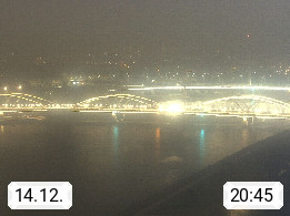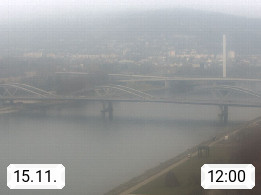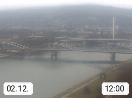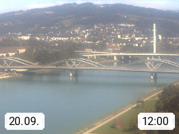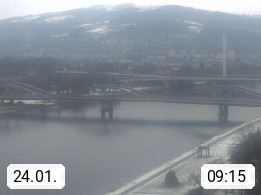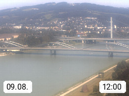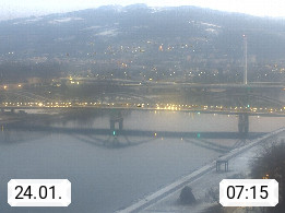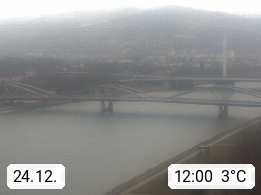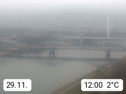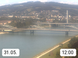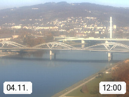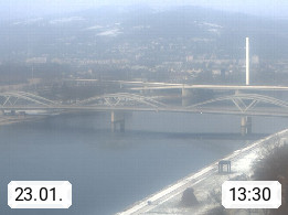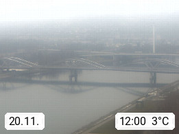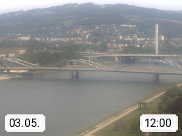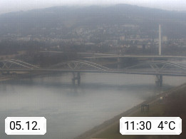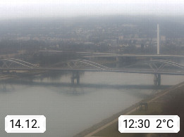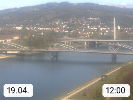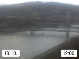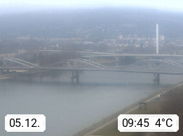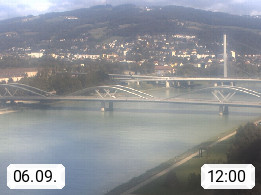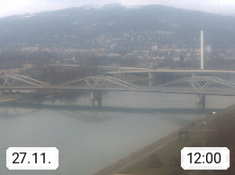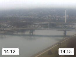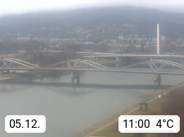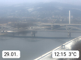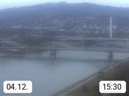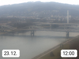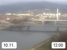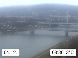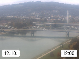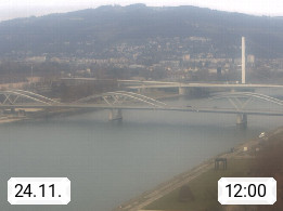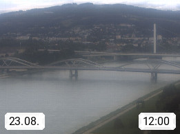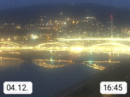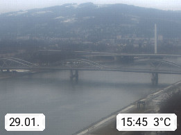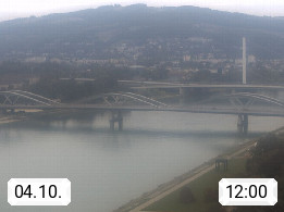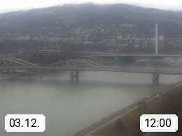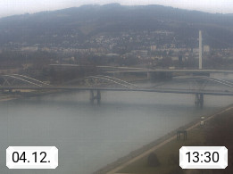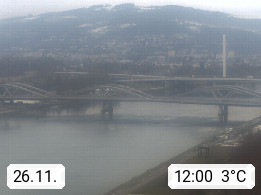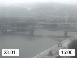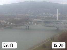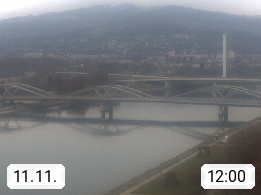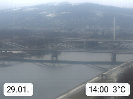 4020 Linz 266m, Landeshauptstadt von Oberösterreich an der Donau. Hier zu sehen sind die Abbrucharbeiten der Linzer Eisenbahnbrücke, mit dem im Juni 2016 begonnen wurde. Links im Bild die Manipulationsfläche, auf der die Brückenteile für den Weitertransport zerlegt werden. Im Hintergrund der Pfenningberg 616m. Präsentiert von http://www.linznet.at.
