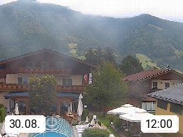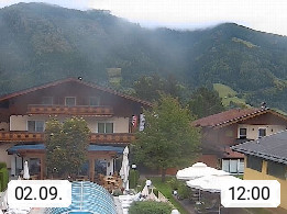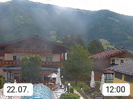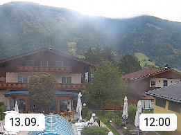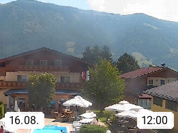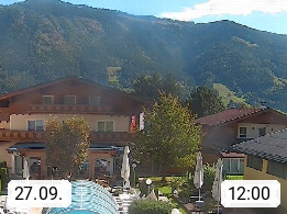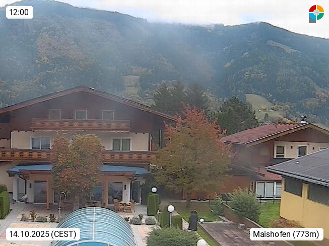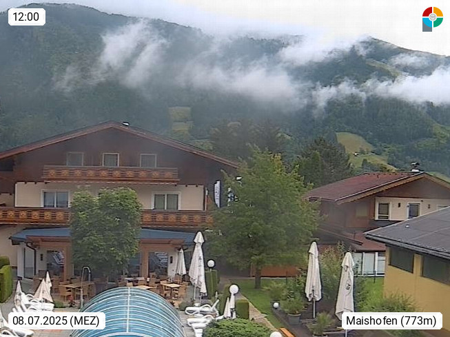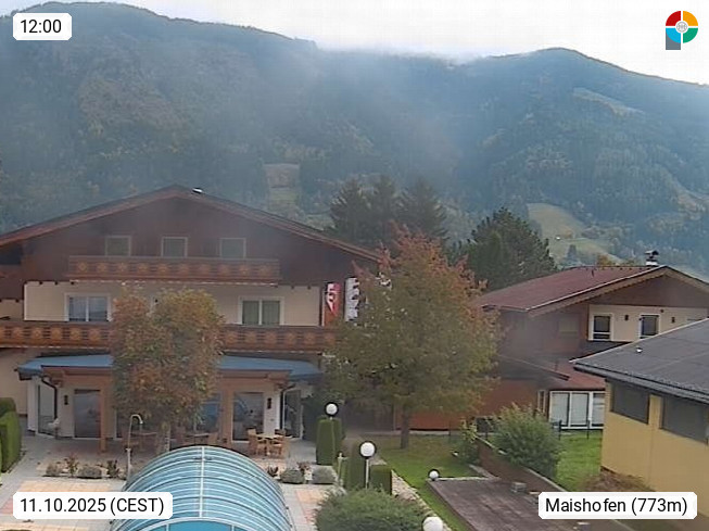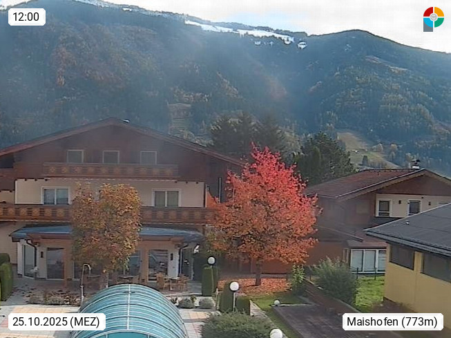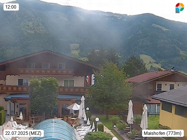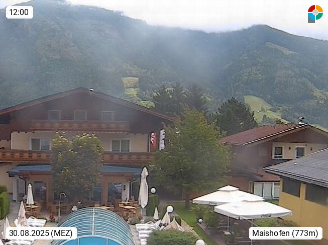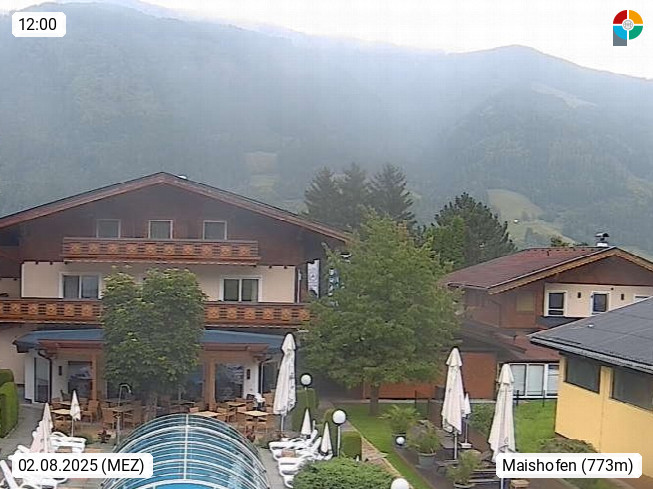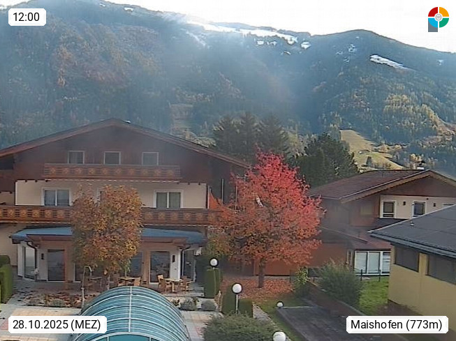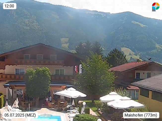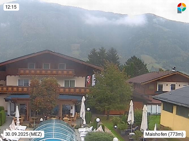 A 5751 Maishofen 768m, Gemeinde im Bezirk Pinzgau zwischen dem Zeller See und Beginn des Glemmtales Richtung Saalbach Hinterglemm, inmitten der Pinzgauer Grasberge. Blick zum Hotel Victoria am Fusse des Atzingerberg und Sausteign 1.800m, Richtung Westen in das Glemmtal. Präsentiert von https://www.hotelvictoria.at/.
