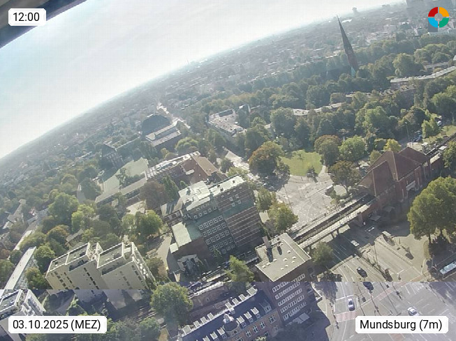 D 22083 Hamburg 9m, Freie Hansestadt Hamburg, niederdeutsch Hamborg liegt in Norddeutschland und ist als Stadtstaat ein eigenes Bundesland und zweitgrößte Stadt Deutschlands. Die Stadt liegt an der Mündung von Alster und Bille in die Elbe, die 110 km weiter nordwestlich in die Nordsee fließt. Der Hamburger Hafen ist der größte Seehafen in Deutschland und der zweitgrößte in Europa. Blick aus dem 28. Stock des bekanntesten Hamburger Hochhaus dem Mundsburg Tower auf die Stadtbezirke Mundsburg, Uhlenhorst und Aussenalster im Stadtzentrum von Hamburg. Präsentiert von http://www.mundsburgtower.de.