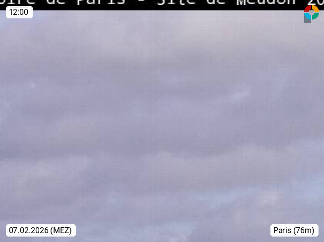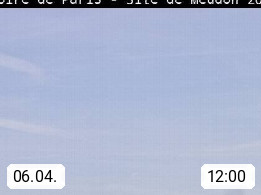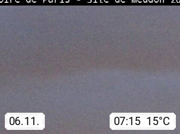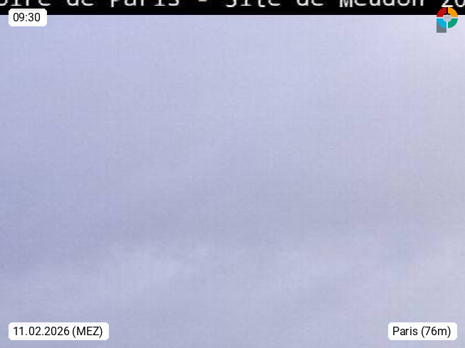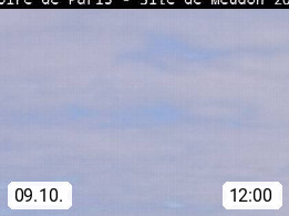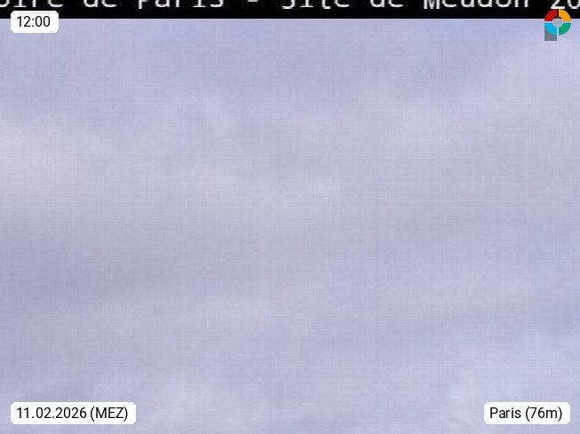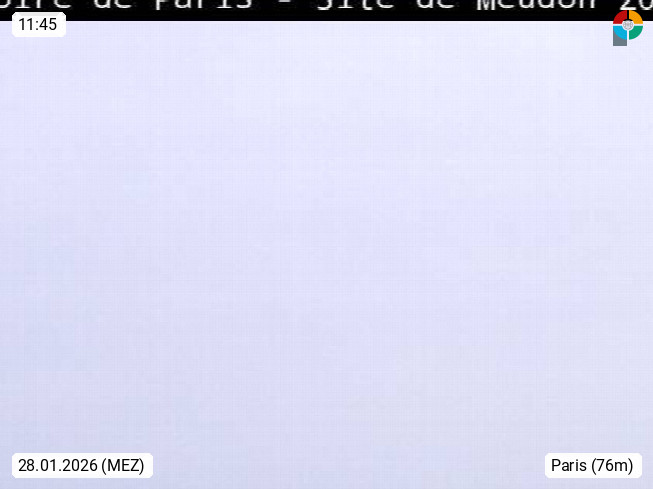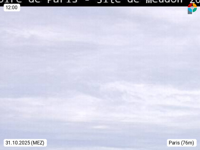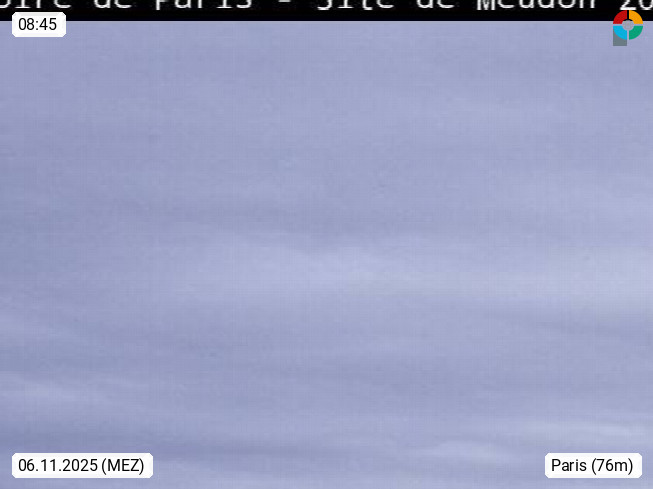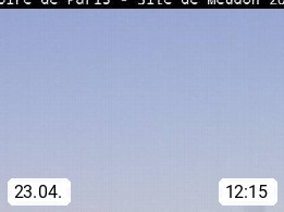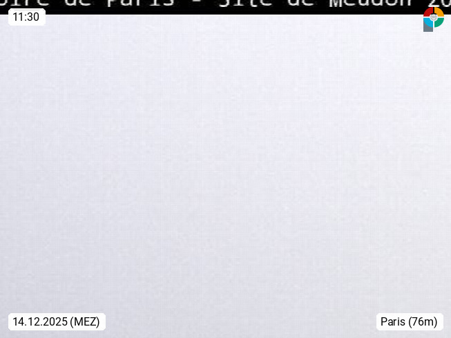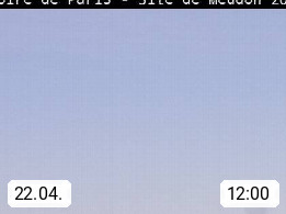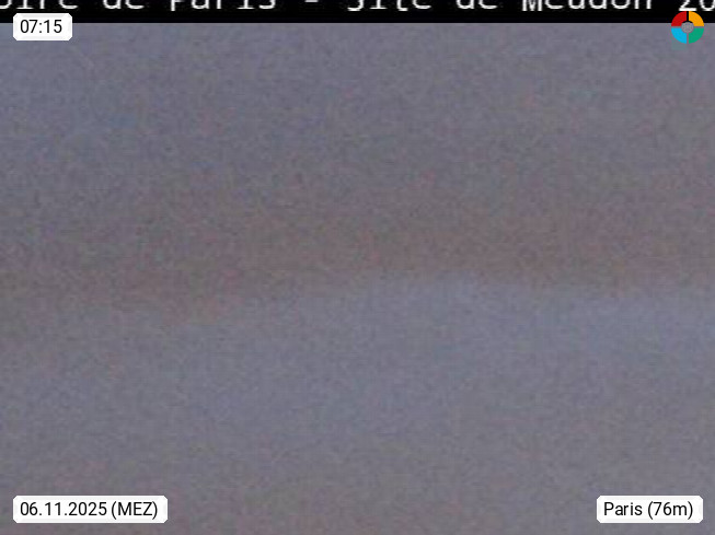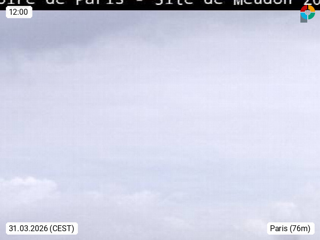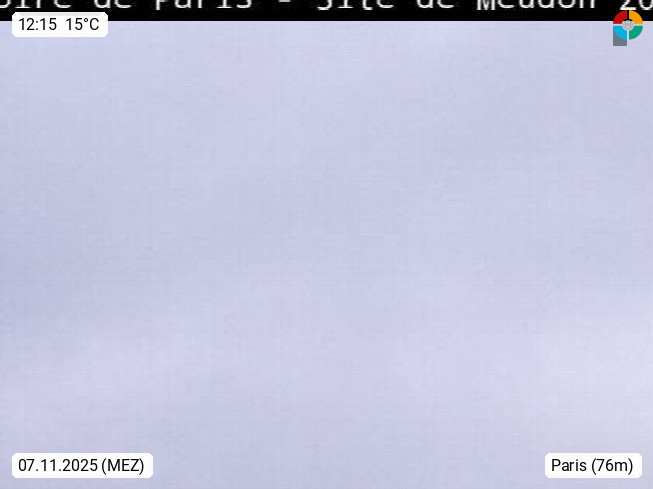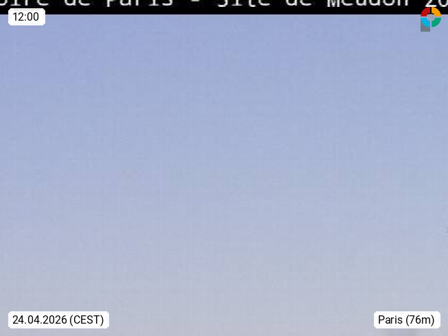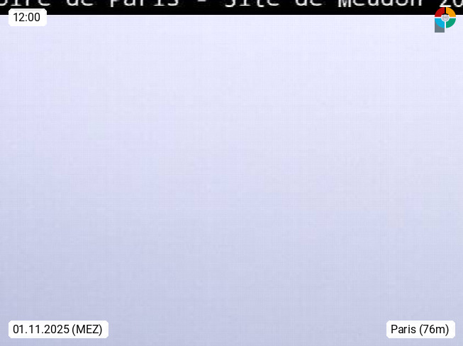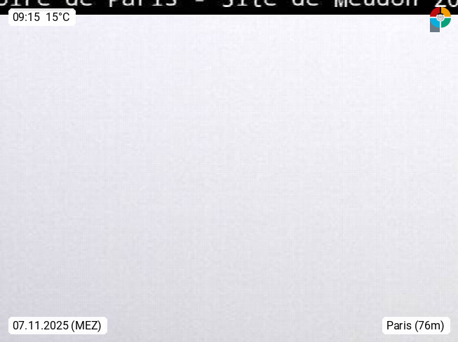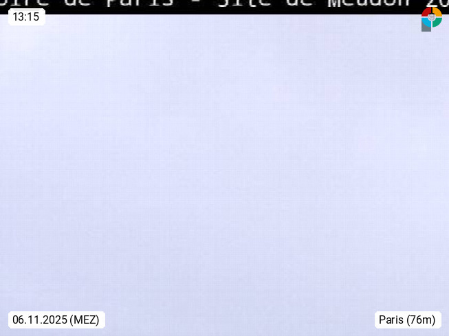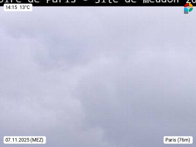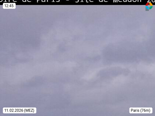 F 75001 Paris 60m, Hauptstadt Frankreichs und der Region Ile de France (Ile de France). Der Fluss Seine teilt die Stadt in einen nördlichen (rive droite rechtes Ufer) und einen südlichen Teil (rive gauche linkes Ufer). Panoramablick von der Innenstadt Richtung Nordwest vom Eiffelturm 325m links, bis rechts der Basilique du Sacre Coeur (Basilika vom Heiligen Herzen) am Montmartre 130 m, der höchsten Erhebung der Stadt. Präsentiert von https://www.obspm.fr.