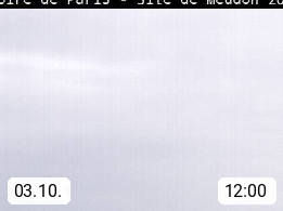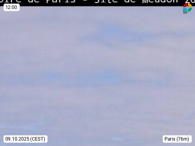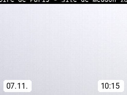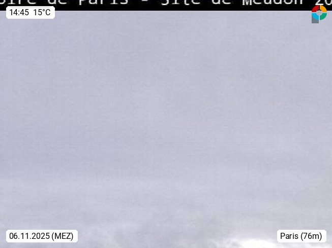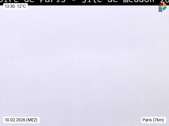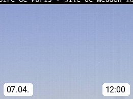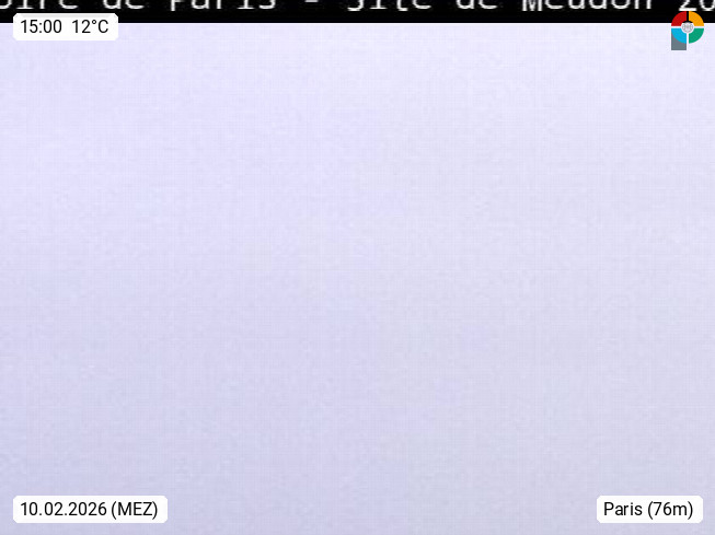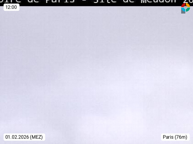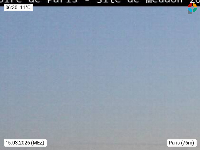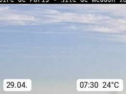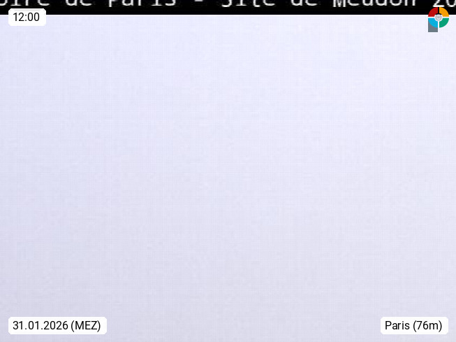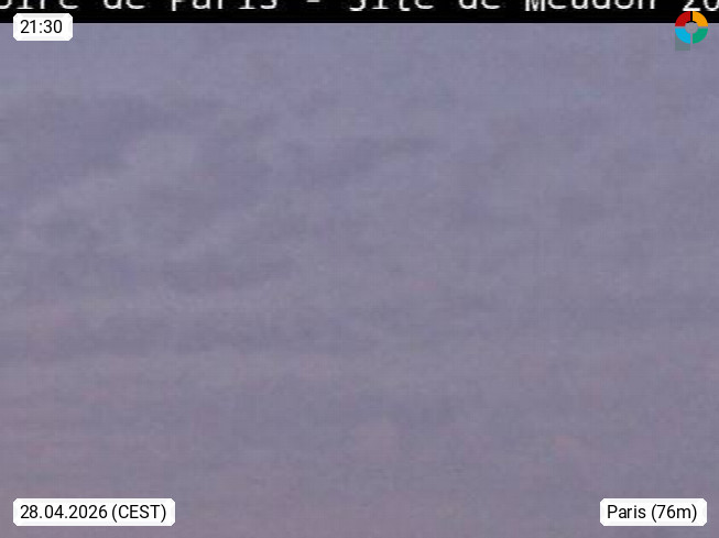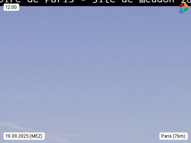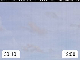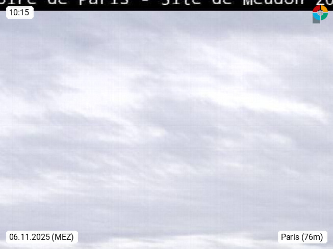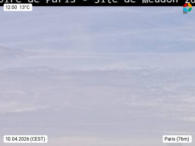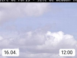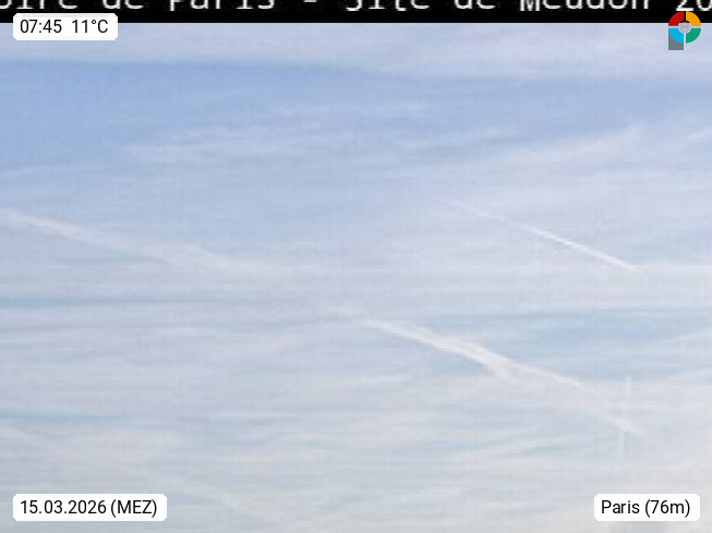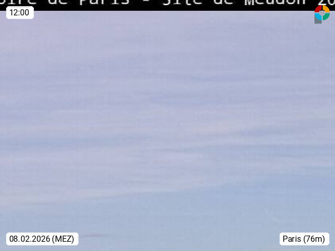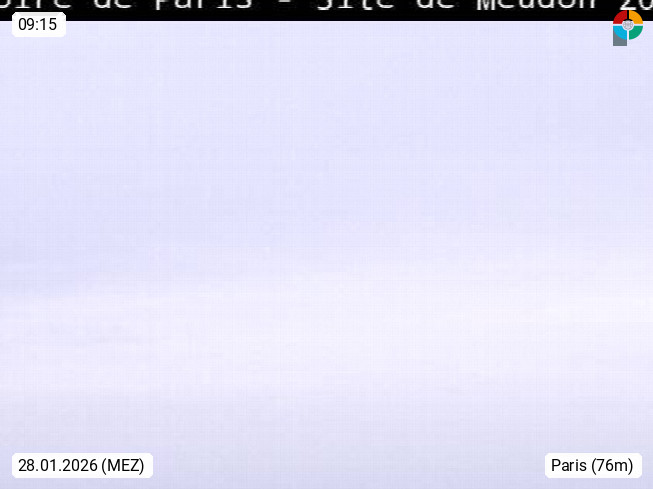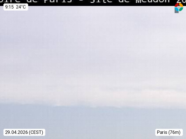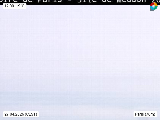 F 75001 Paris 60m, Hauptstadt Frankreichs und der Region Ile de France (Ile de France). Der Fluss Seine teilt die Stadt in einen nördlichen (rive droite rechtes Ufer) und einen südlichen Teil (rive gauche linkes Ufer). Panoramablick von der Innenstadt Richtung Nordwest vom Eiffelturm 325m links, bis rechts der Basilique du Sacre Coeur (Basilika vom Heiligen Herzen) am Montmartre 130 m, der höchsten Erhebung der Stadt. Präsentiert von https://www.obspm.fr.