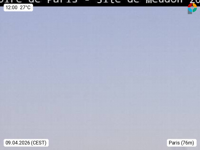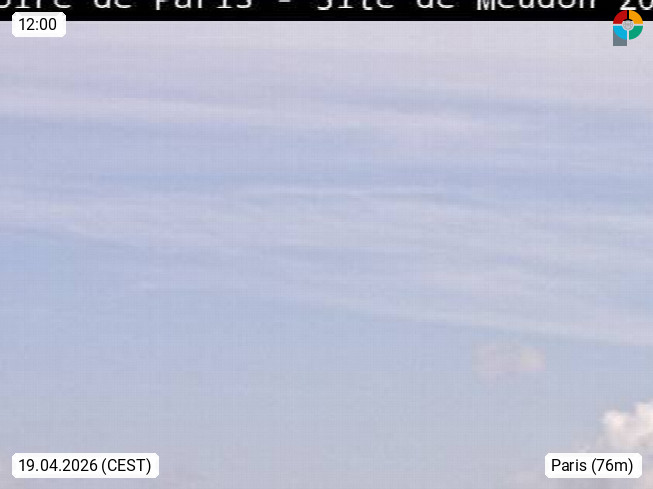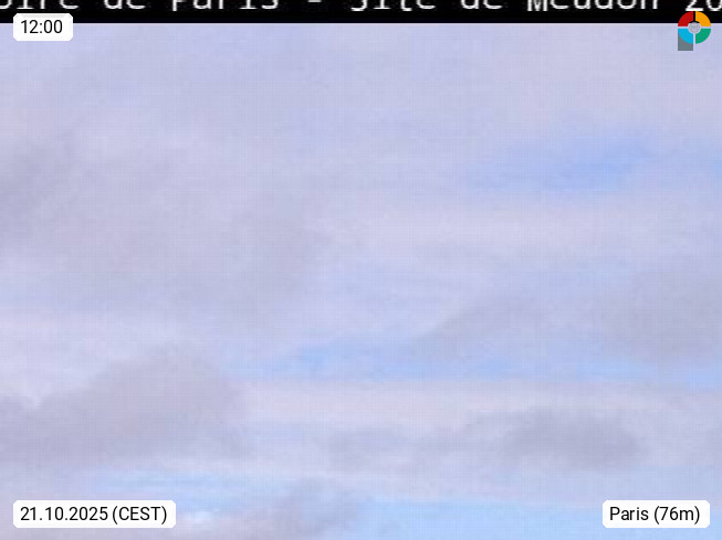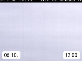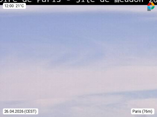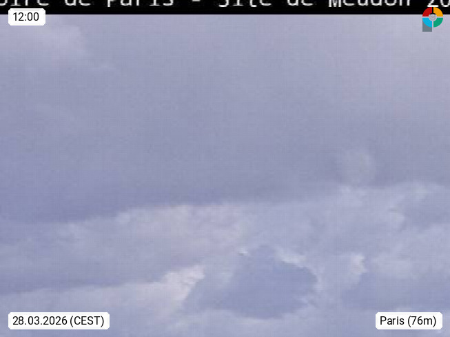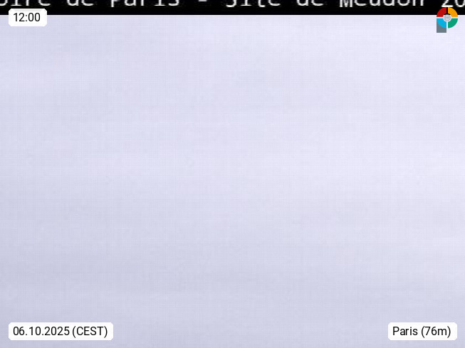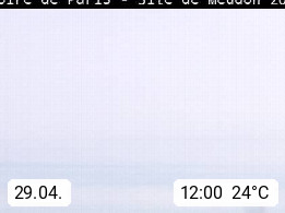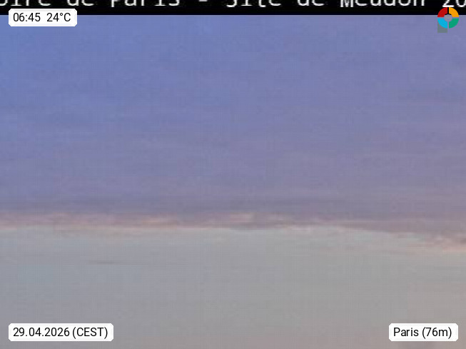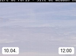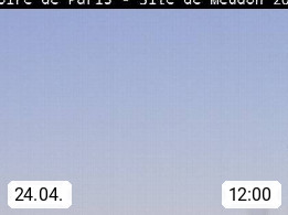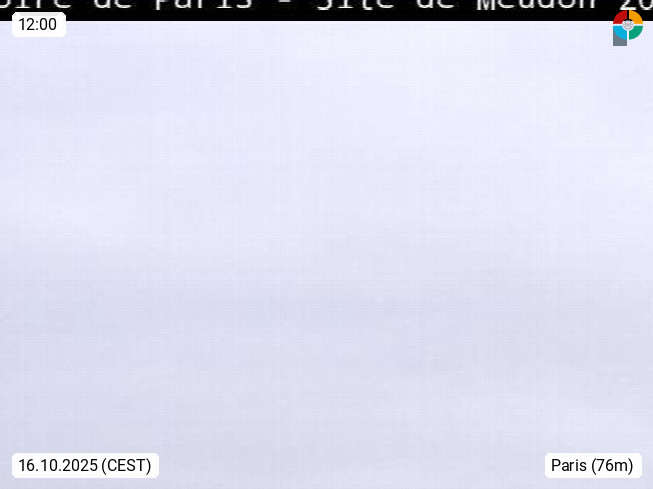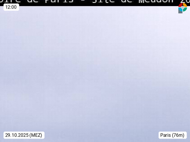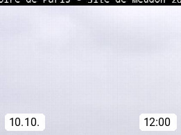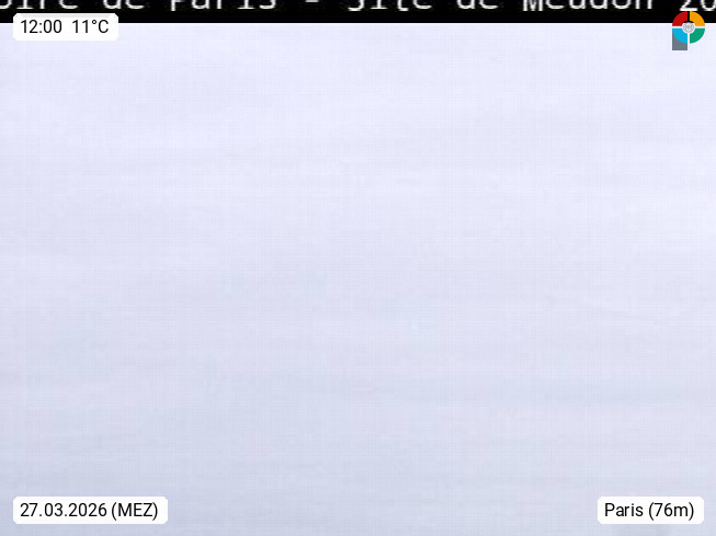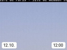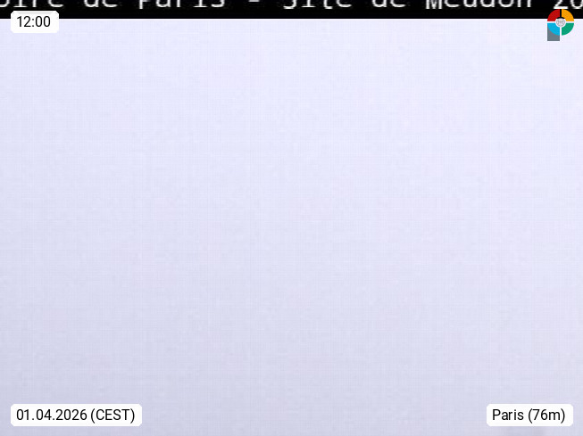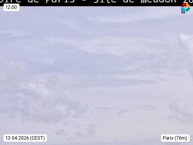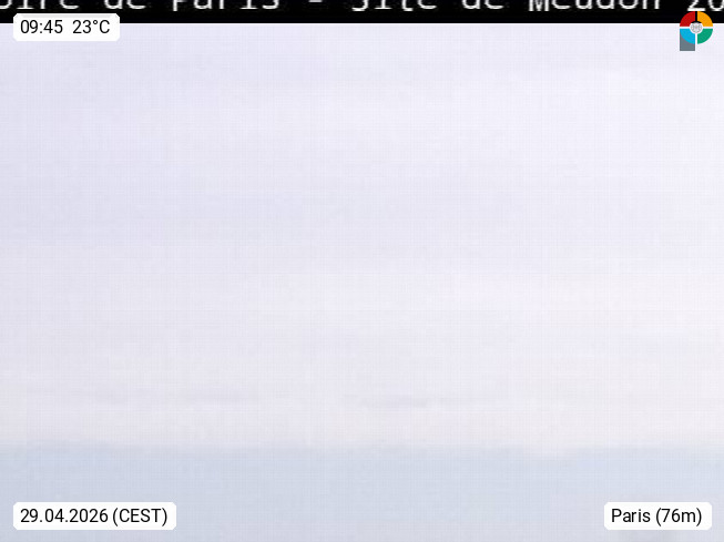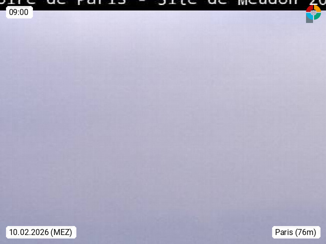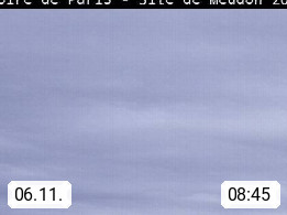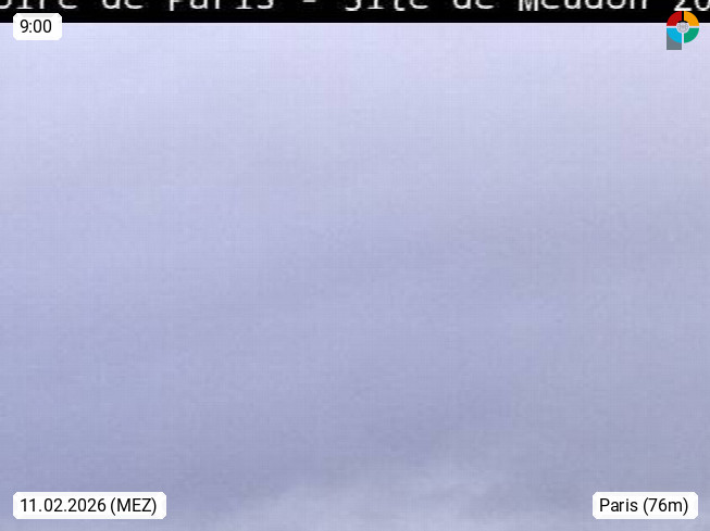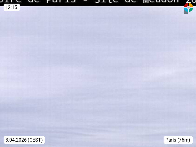 F 75001 Paris 60m, Hauptstadt Frankreichs und der Region Ile de France (Ile de France). Der Fluss Seine teilt die Stadt in einen nördlichen (rive droite rechtes Ufer) und einen südlichen Teil (rive gauche linkes Ufer). Panoramablick von der Innenstadt Richtung Nordwest vom Eiffelturm 325m links, bis rechts der Basilique du Sacre Coeur (Basilika vom Heiligen Herzen) am Montmartre 130 m, der höchsten Erhebung der Stadt. Präsentiert von https://www.obspm.fr.