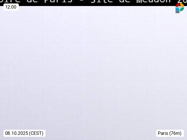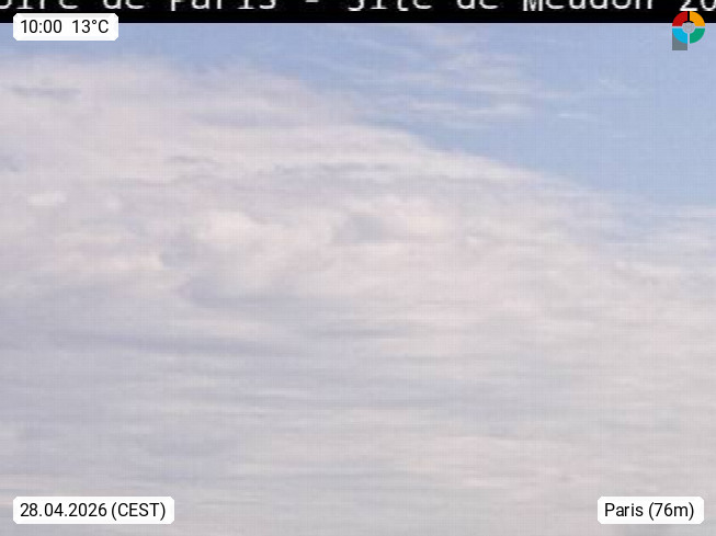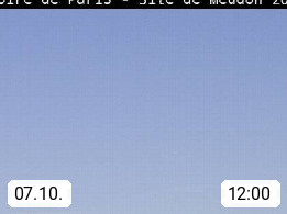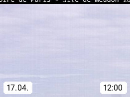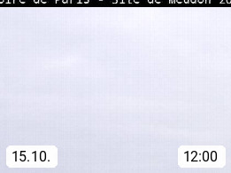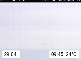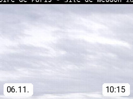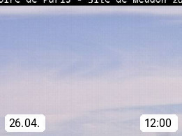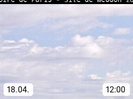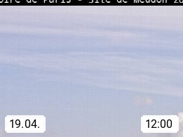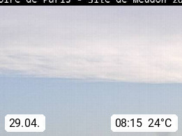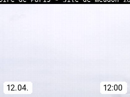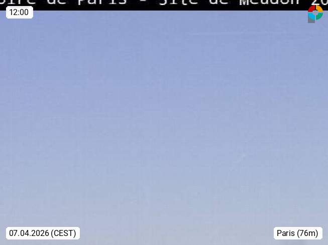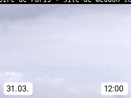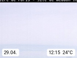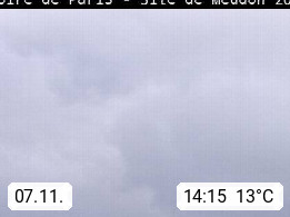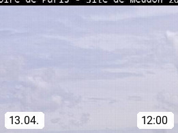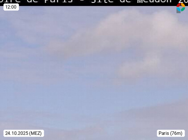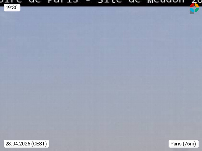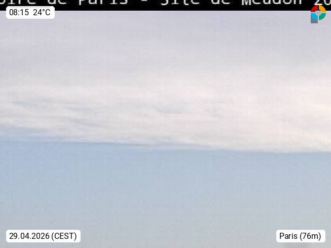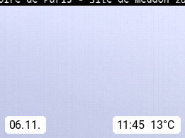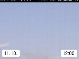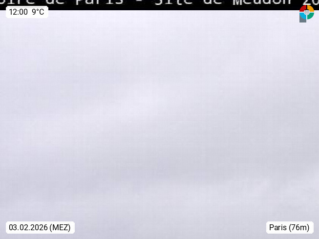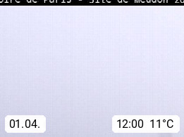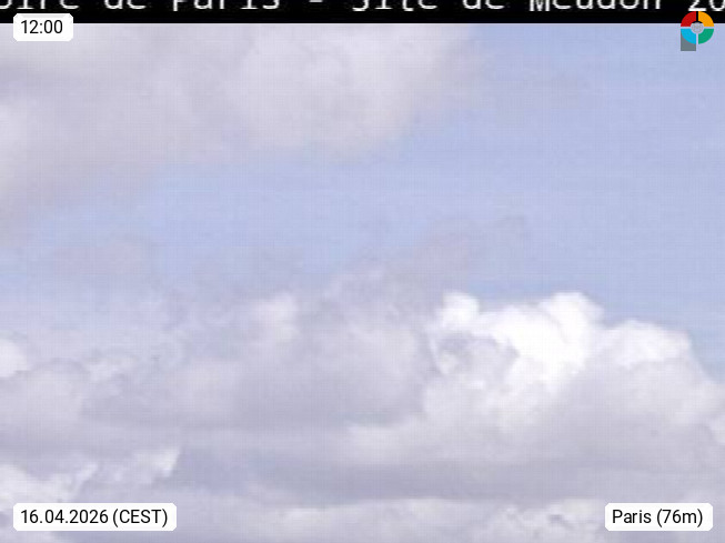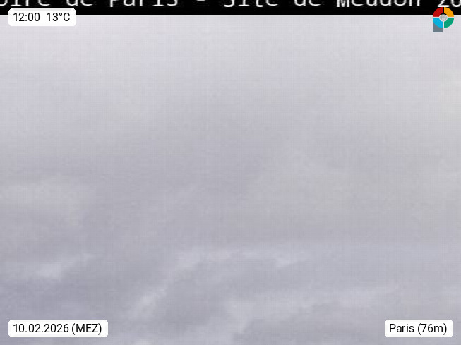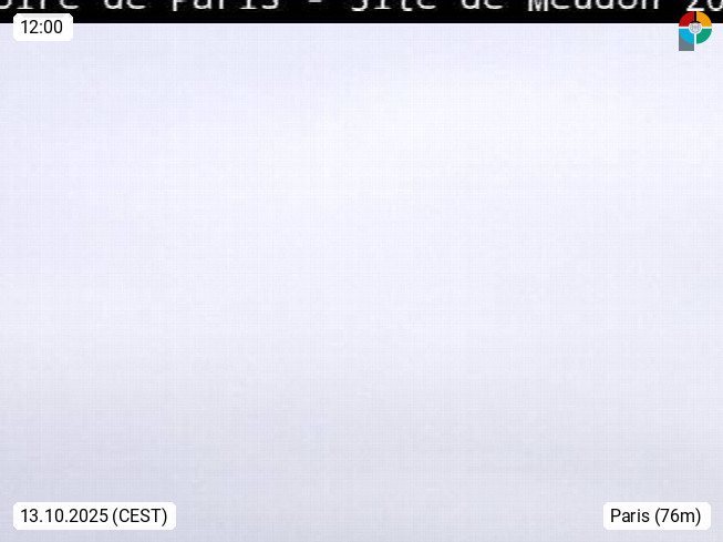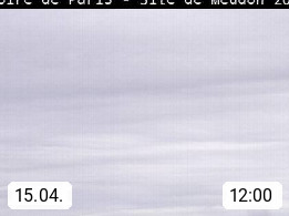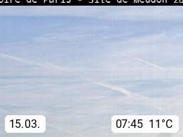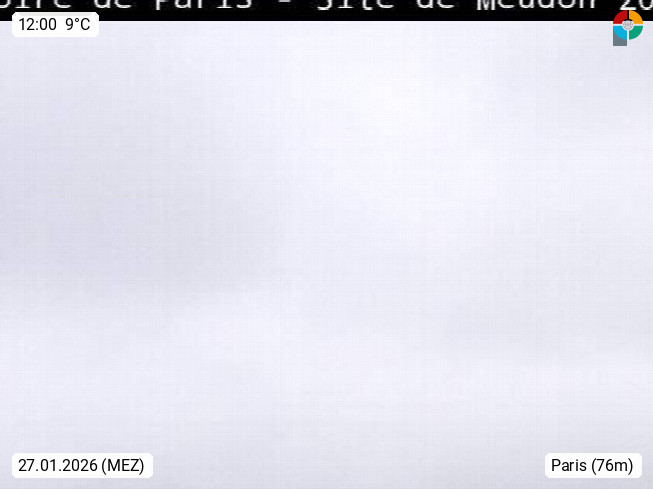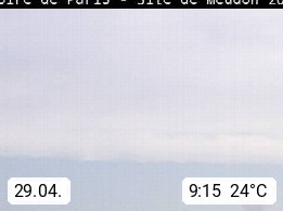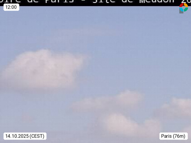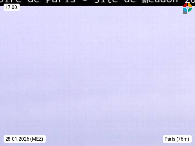 F 75001 Paris 60m, Hauptstadt Frankreichs und der Region Ile de France (Ile de France). Der Fluss Seine teilt die Stadt in einen nördlichen (rive droite rechtes Ufer) und einen südlichen Teil (rive gauche linkes Ufer). Panoramablick von der Innenstadt Richtung Nordwest vom Eiffelturm 325m links, bis rechts der Basilique du Sacre Coeur (Basilika vom Heiligen Herzen) am Montmartre 130 m, der höchsten Erhebung der Stadt. Präsentiert von https://www.obspm.fr.
