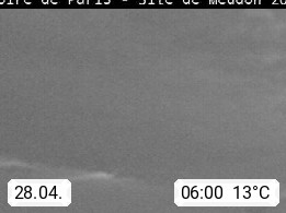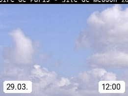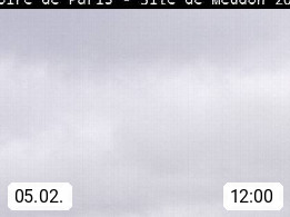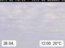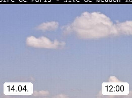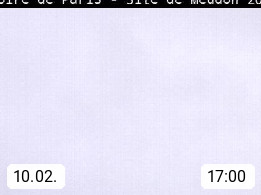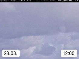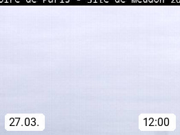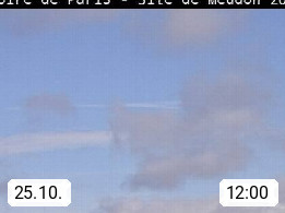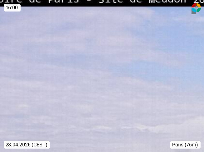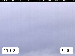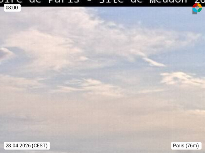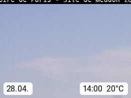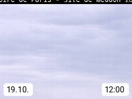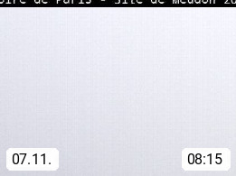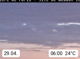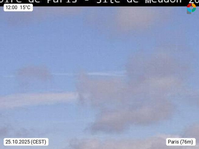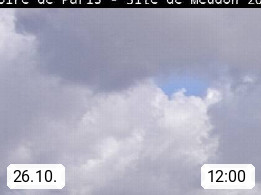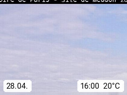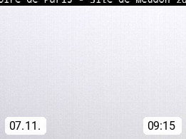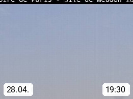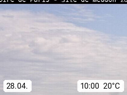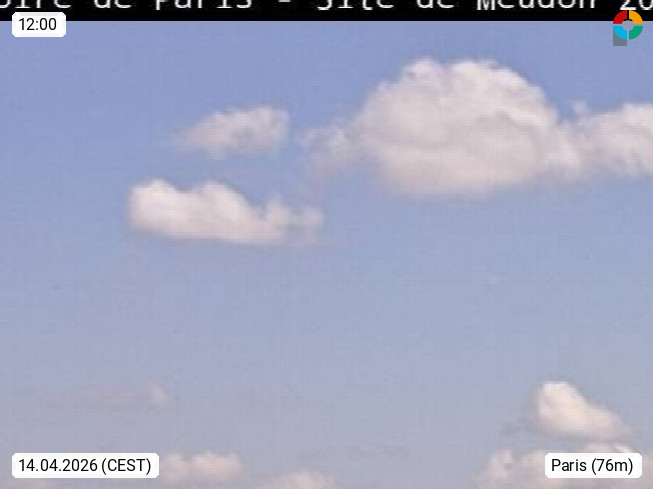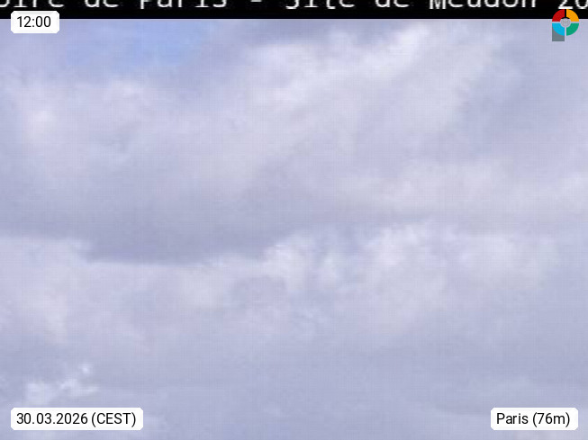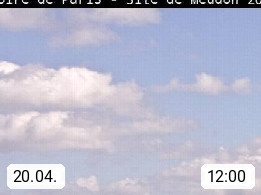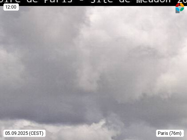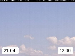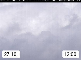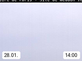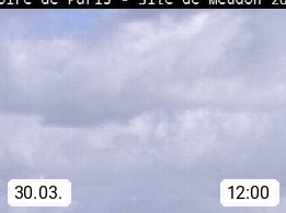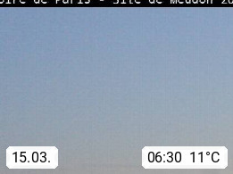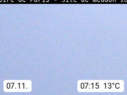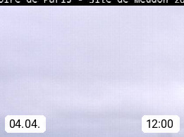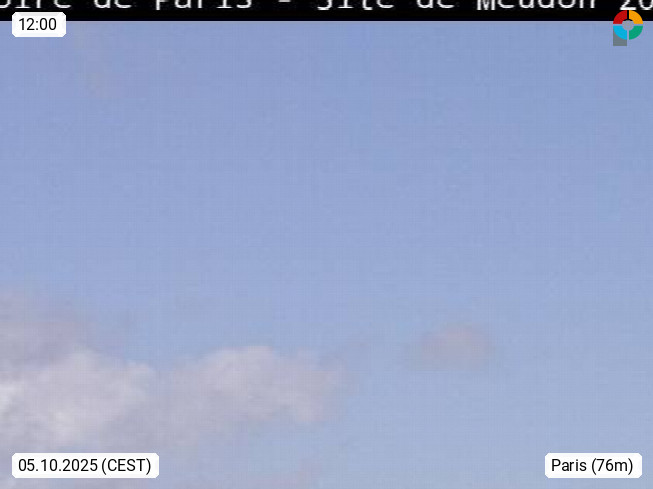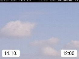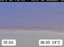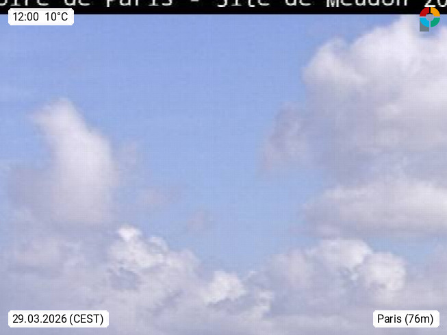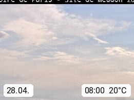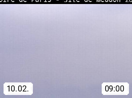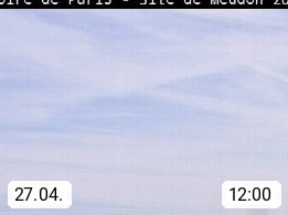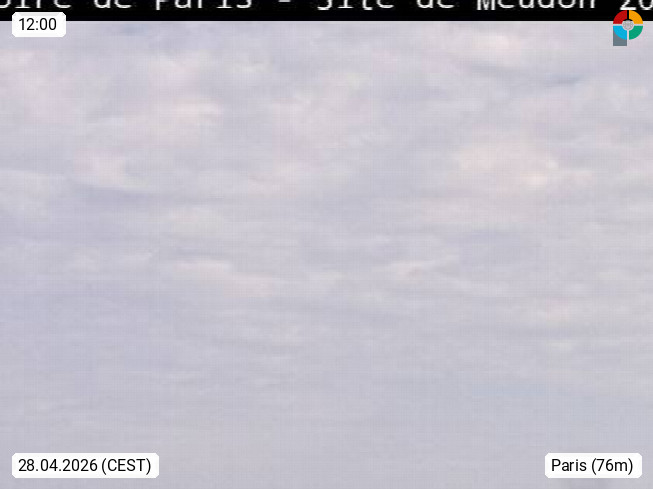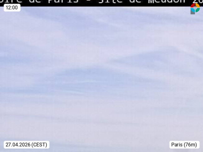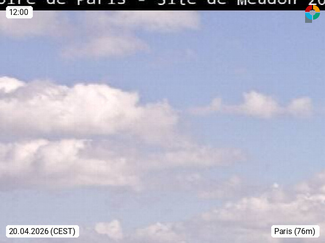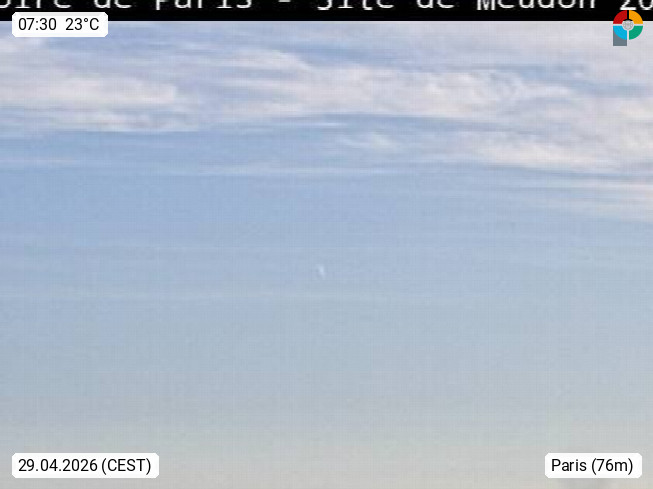 F 75001 Paris 60m, Hauptstadt Frankreichs und der Region Ile de France (Ile de France). Der Fluss Seine teilt die Stadt in einen nördlichen (rive droite rechtes Ufer) und einen südlichen Teil (rive gauche linkes Ufer). Panoramablick von der Innenstadt Richtung Nordwest vom Eiffelturm 325m links, bis rechts der Basilique du Sacre Coeur (Basilika vom Heiligen Herzen) am Montmartre 130 m, der höchsten Erhebung der Stadt. Präsentiert von https://www.obspm.fr.