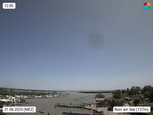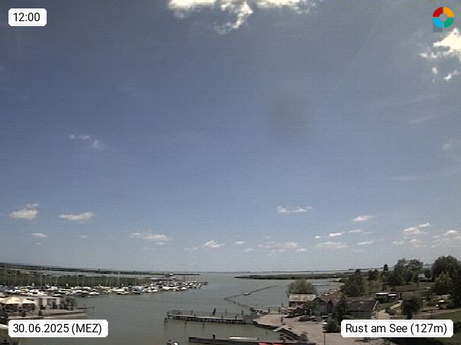 AT 7071 Rust am Neusiedlersee 124m, ung. Ruszt, kroat. Rusta ist mit rund 2.000 Einwohnern und 20,01 km² der kleinste Verwaltungsbezirk und die kleinste Statutarstadt Österreichs. Bekannt ist Rust vor allem als Stadt der Störche und als Weinbaugemeinde. Panoramablick von der Altstadt Richtung Süden über den Schilfgürtel am Neusiedlersee. Präsentiert von https://www.freistadt-rust.at/.