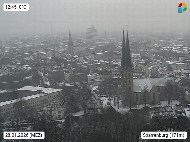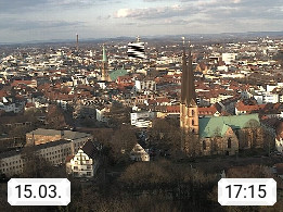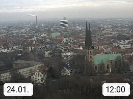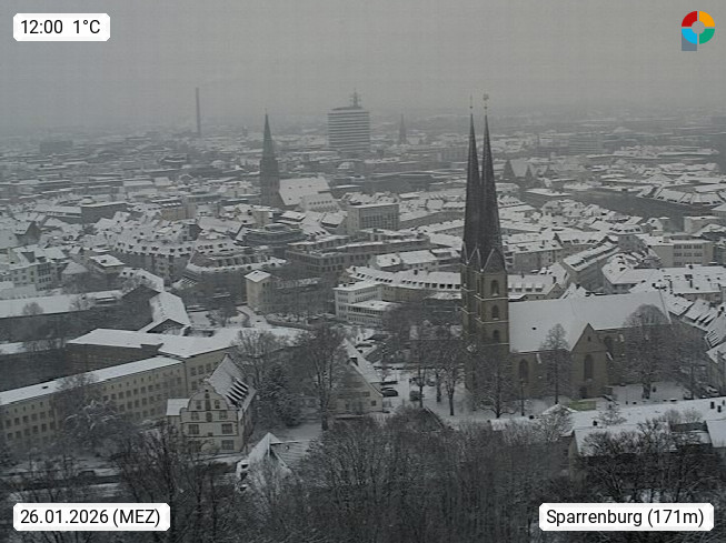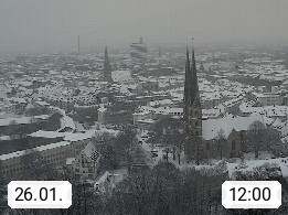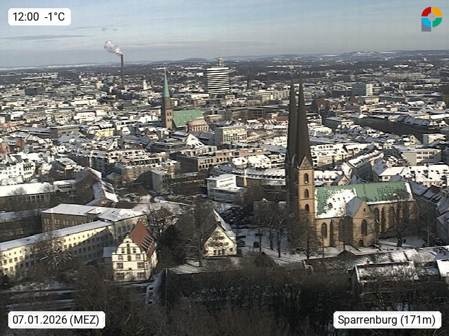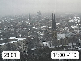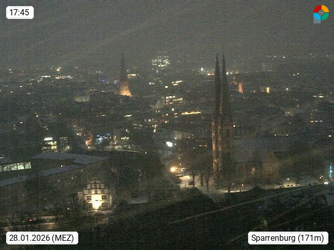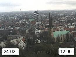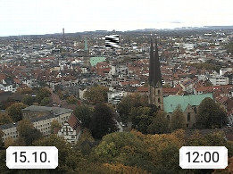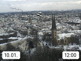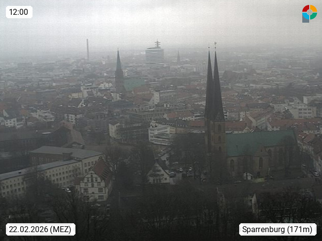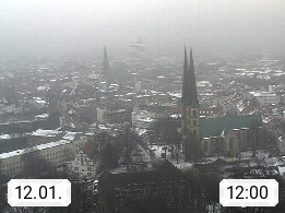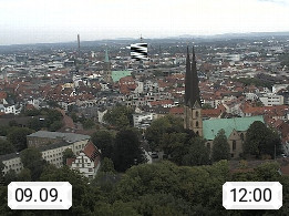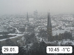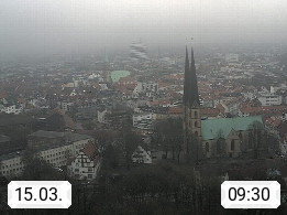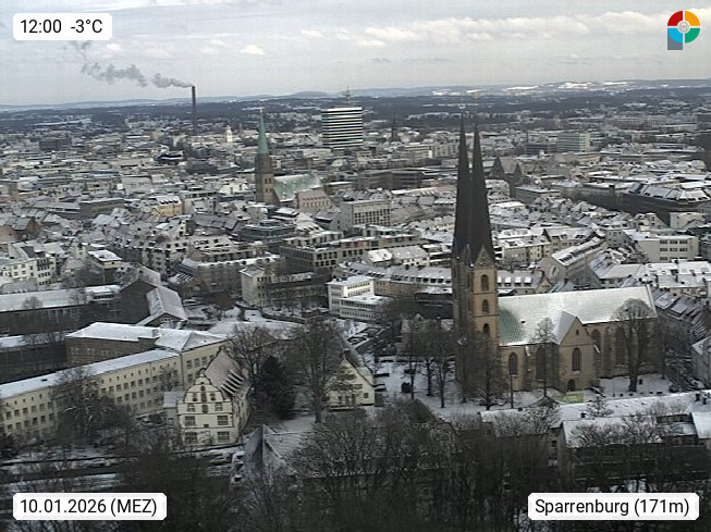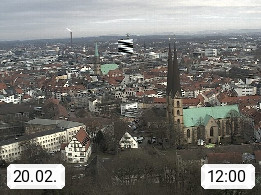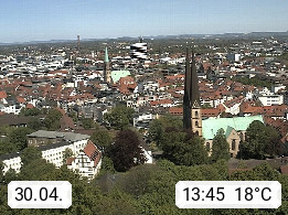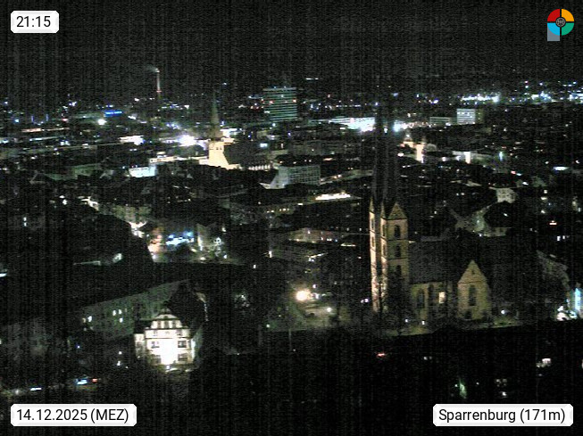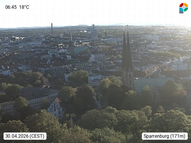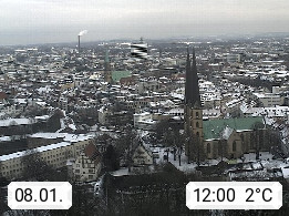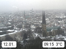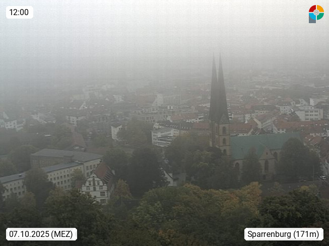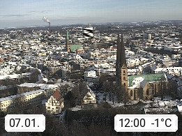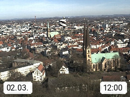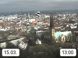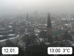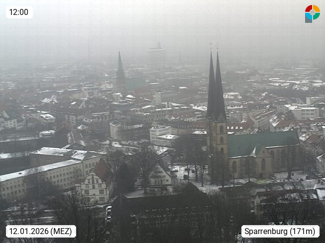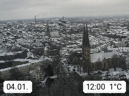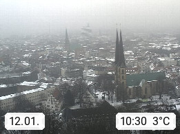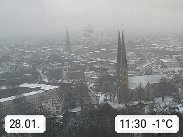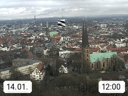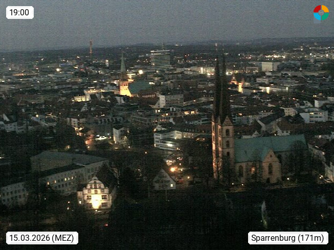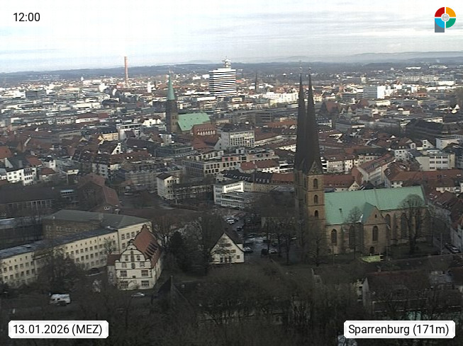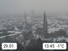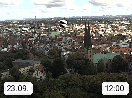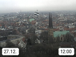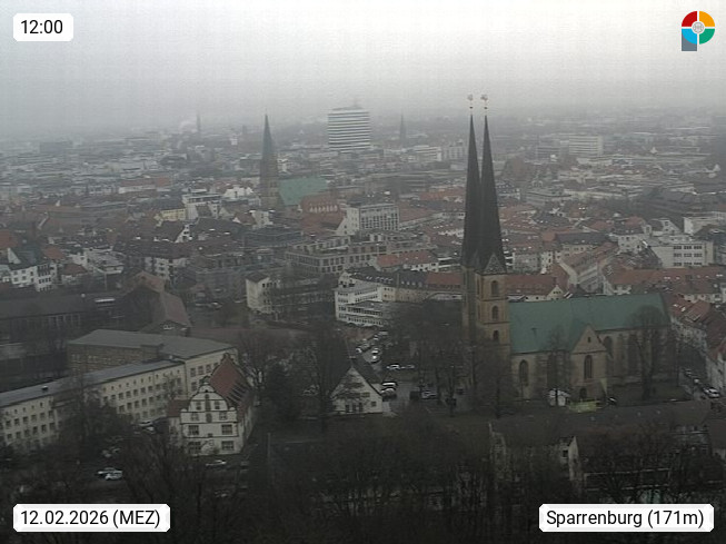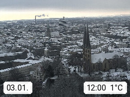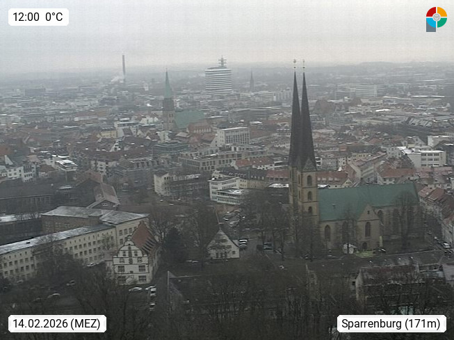 D 33609 Bielfeld Sparrenburg 182m, kreisfreie Stadt im Regierungsbezirk Detmold im Nordosten Nordrhein Westfalens in der Hügellandschaft der Ravensberger Mulde. Panoramablick von der Sparrenburg einer restaurierten Festungsanlage und Wahrzeichen von Bielefeld, Richtung Norden. Präsentiert von https://bicos.de/.