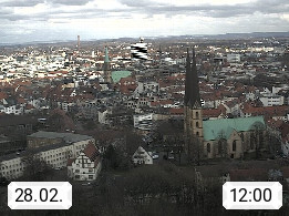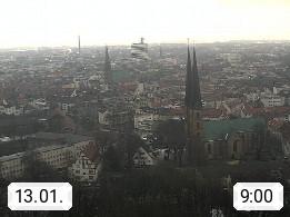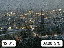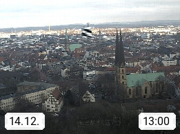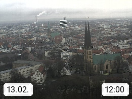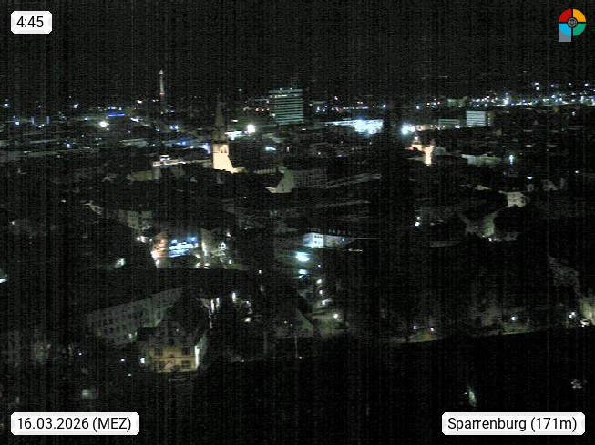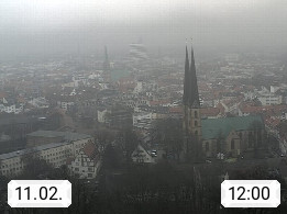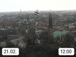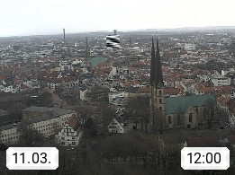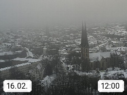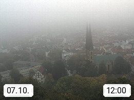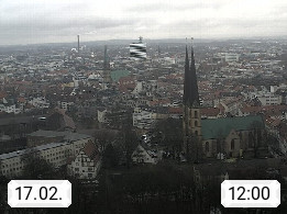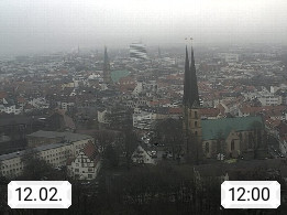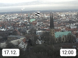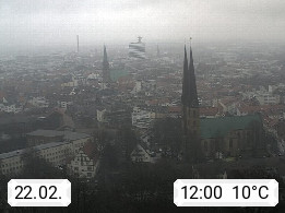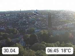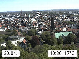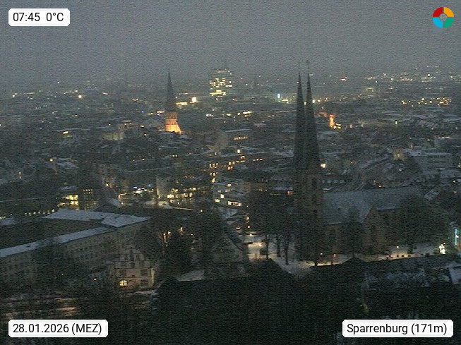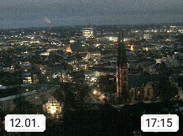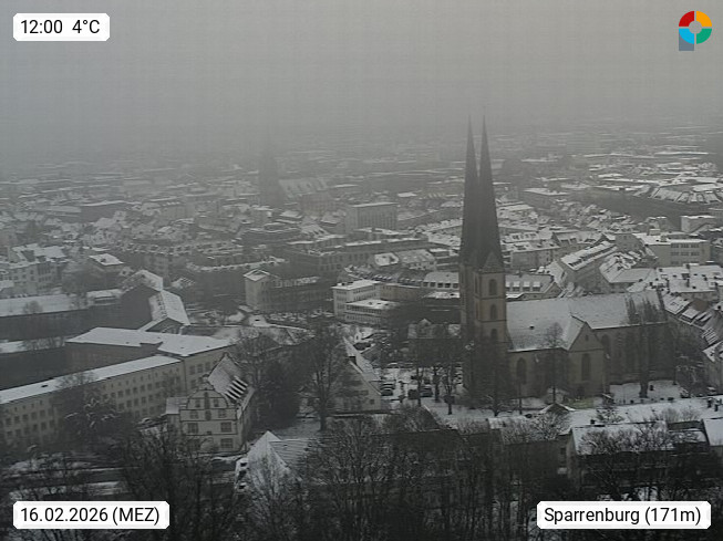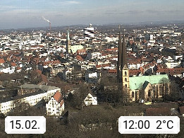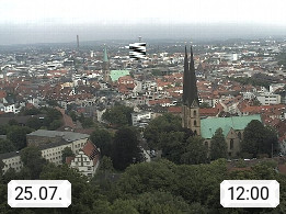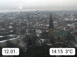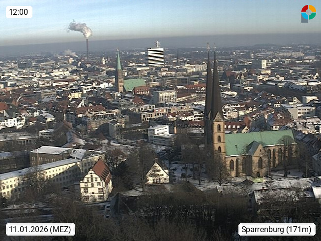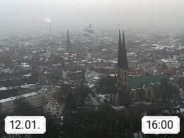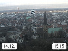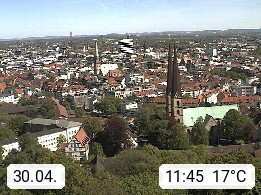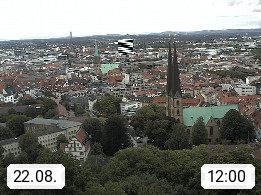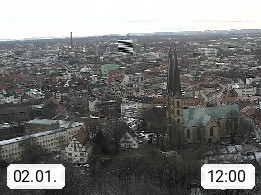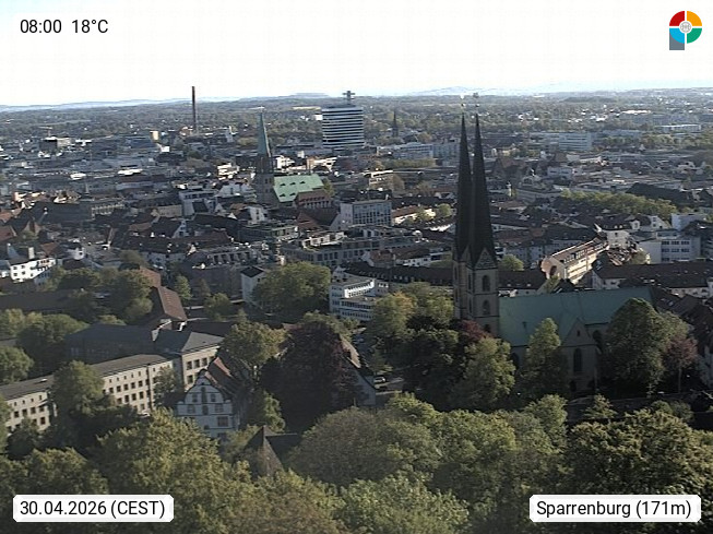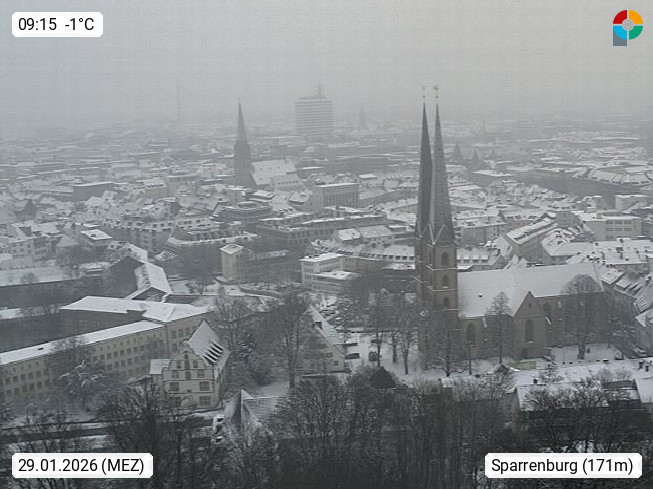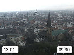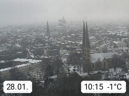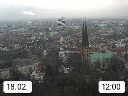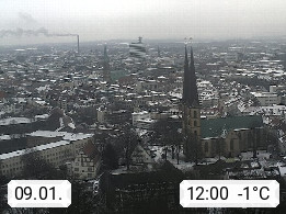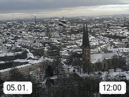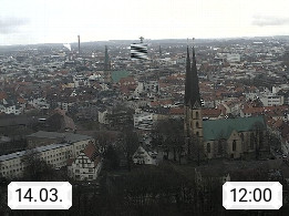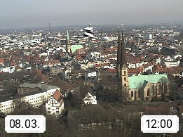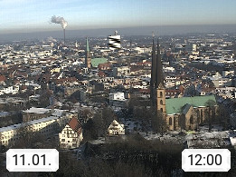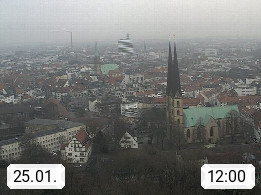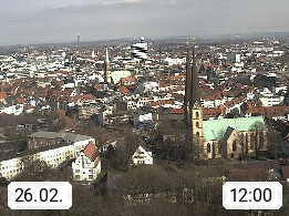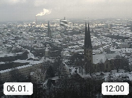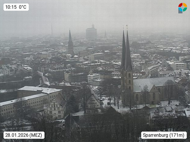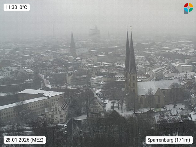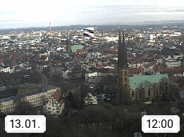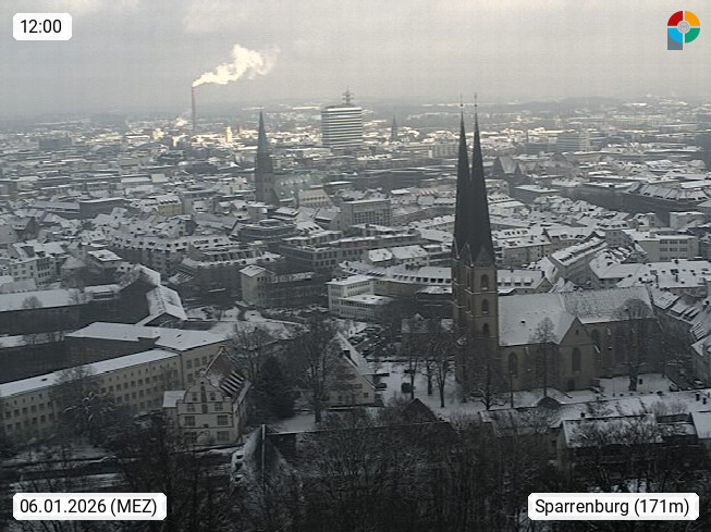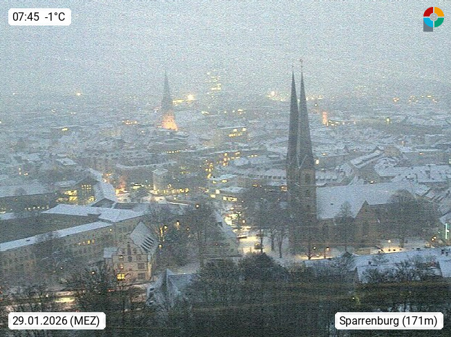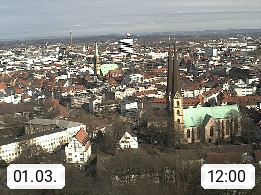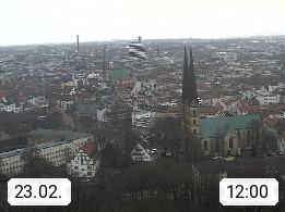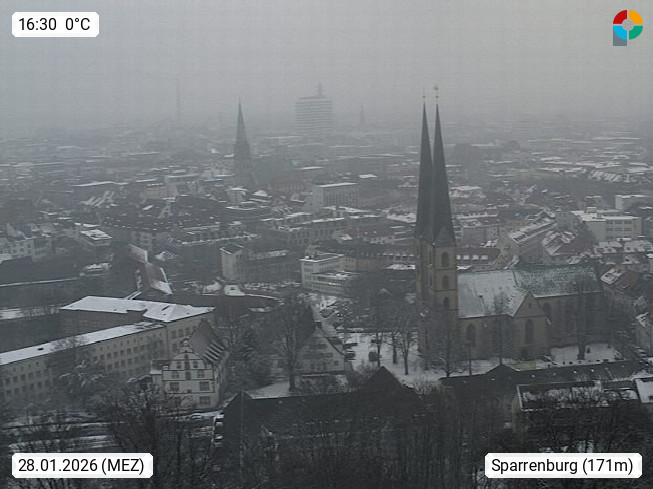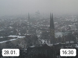 D 33609 Bielfeld Sparrenburg 182m, kreisfreie Stadt im Regierungsbezirk Detmold im Nordosten Nordrhein Westfalens in der Hügellandschaft der Ravensberger Mulde. Panoramablick von der Sparrenburg einer restaurierten Festungsanlage und Wahrzeichen von Bielefeld, Richtung Norden. Präsentiert von https://bicos.de/.