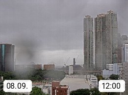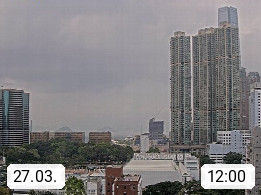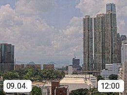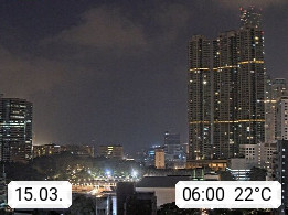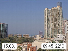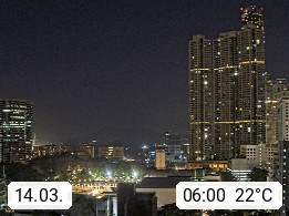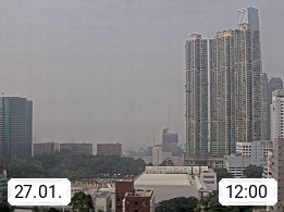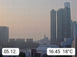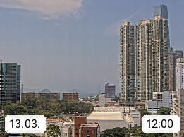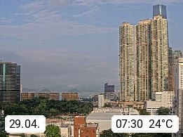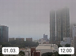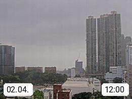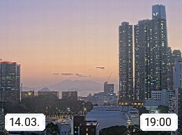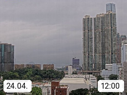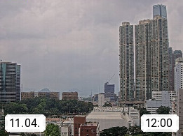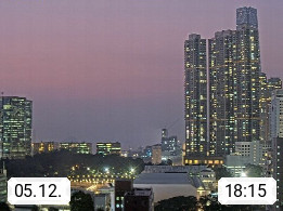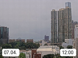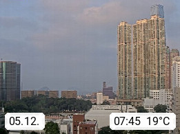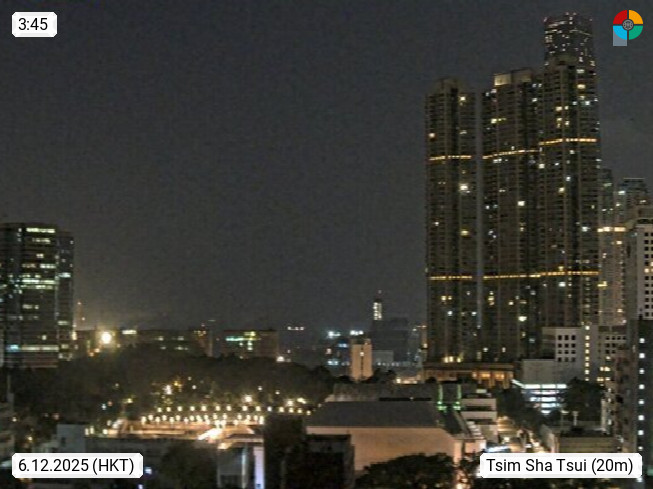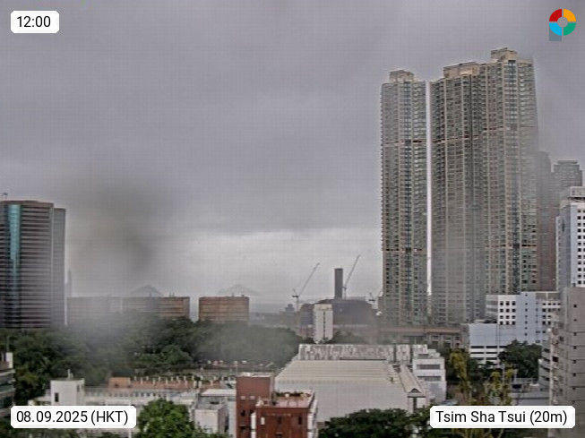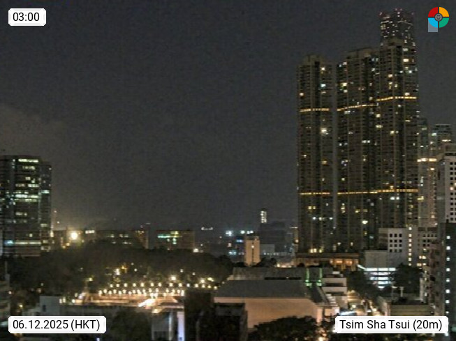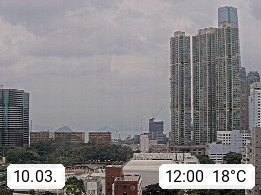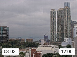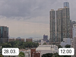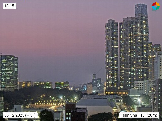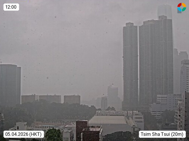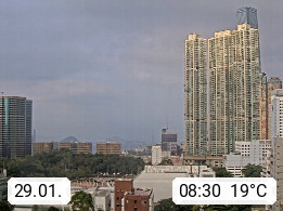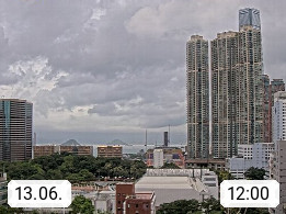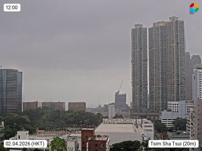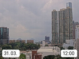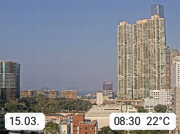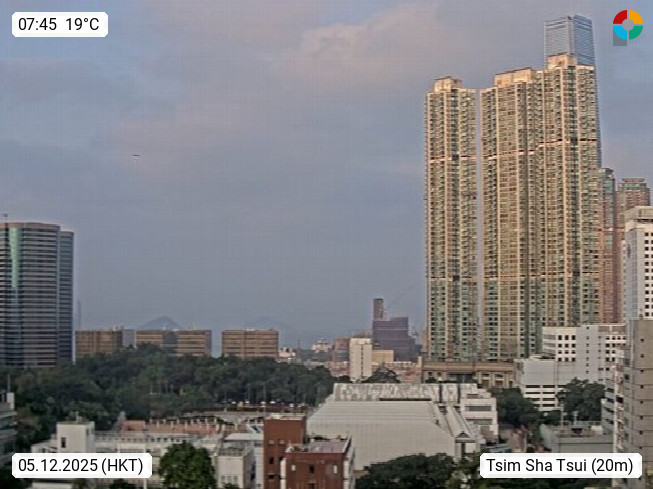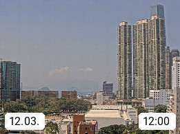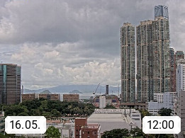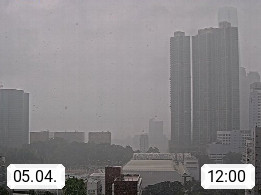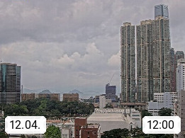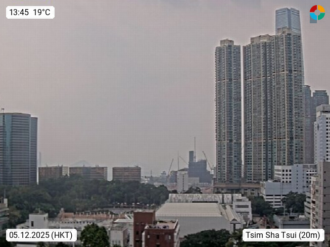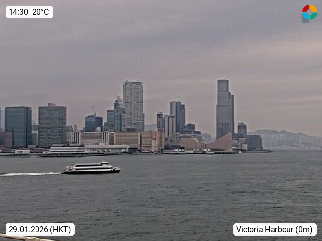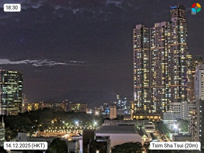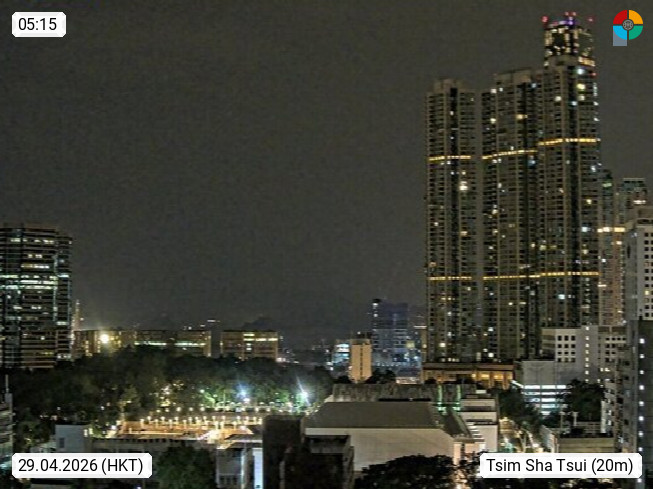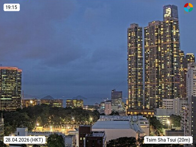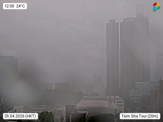 Hongkong 2.755 km² seit 1997 Hong Kong Special Administrative Region of the People Republic of China, eine Sonderverwaltungszone an der Südküste der Volksrepublik China. Hongkong liegt an der Mündung des Perlflusses in das südchinesische Meer und erstreckt sich über eine Halbinsel und rund 260 dazu gehörenden Inseln. Hongkong ist hinsichtlich der Bevölkerungszahl mit rund 7 Mio Einwohnern die drittgrößte Metropolregion der Volksrepublik China. Blick vom Bürogebäude des Wetterdienstes in Honkong Richtung Westen, von links beginnend, Kowloon Park, Green Island, Kau Yi Chau, und im Hintergrund den Sunset Peak. Präsentiert von https://www.hko.gov.hk/.