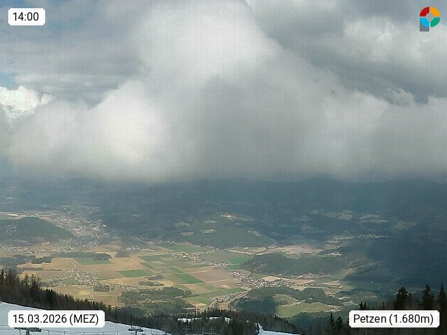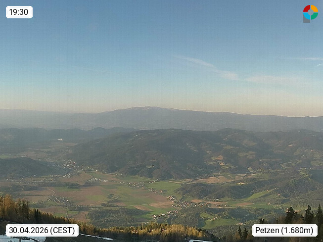 A 9143 Feistritz ob Bleiburg 550m, ist eine Gemeinde im Bezirk Völkermarkt. Blick Richtung Nordwest von der Bergstation der Petzen Bergbahn in 1.708m über das Jaunfeld nach Völkermarkt. Die Petzen ist die östlichste Erhebung der Karawanken und die höchste Erhebung ist der Kordeschkopf mit 2.126m. Präsentiert von https://www.petzen.net/.
