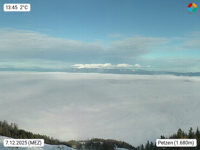A 9143 Feistritz ob Bleiburg 550m, ist eine Gemeinde im Bezirk Völkermarkt. Blick Richtung Nordwest von der Bergstation der Petzen Bergbahn in 1.708m über das Jaunfeld nach Völkermarkt. Die Petzen ist die östlichste Erhebung der Karawanken und die höchste Erhebung ist der Kordeschkopf mit 2.126m. Präsentiert von https://www.petzen.net/.