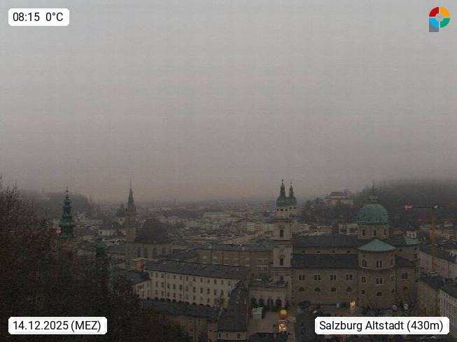 A 5010 Salzburg 424m, Blick Richtung Osten über den Kapittelplatz zum Salzburger Dom, der Franziskanerkirche und dem Stift St. Peter in der Salzburger Altstadt. In Salzburg befindet sich u.a. der größte erhaltene Wehrbau Mitteleuropas die Festung Hohensalzburg, http://www.hohensalzburg.com. Präsentiert von https://www.salzburg-bahnen.at/de/festungsbahn.html.