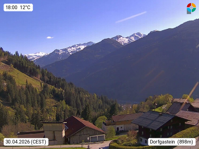 A 5632 Dorfgastein 830m, erste und auch kleinste Gemeinde im Gasteinertal im Bezirk St. Johann im Pongau. Blick vom Ortsteil Bergl Richtung südost in das Gasteinertal und dem Bernkogel 2.325m. Präsentiert von https://www.pongau.info/.