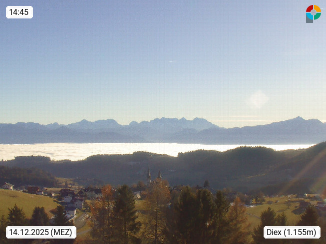 A 9103 Diex 1.152m, ist eine Gemeinde im Bezirk Völkermarkt und liegt nahe dem südlichen Abhang der Saualpe über dem Lavanttal und dem Jauntal. Blick Richtung Süden zur Kirche St. Martin. Präsentiert von https://www.diex.gv.at/.