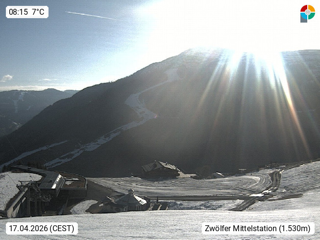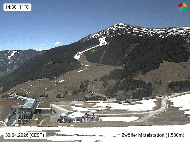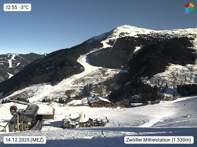A 5753 Saalbach Hinterglemm 1.003m, Urlaubsort im Pinzgau in dem von Westen nach Osten verlaufenden Tal der Saalach und gehört zur Region der Kitzbüheler Alpen im Bezirk Zell am See. Blick von der Mittelstation in 1.530m der Zwölferkogel Seilbahn Richtung Süden. Präsentiert von https://www.saalbach.com/.