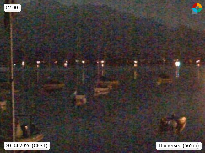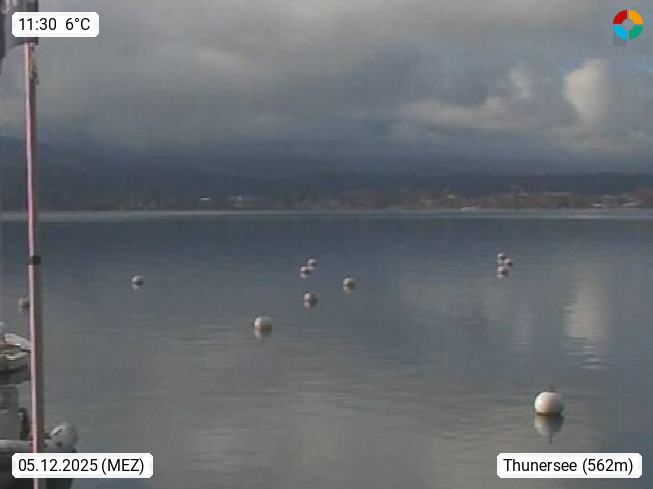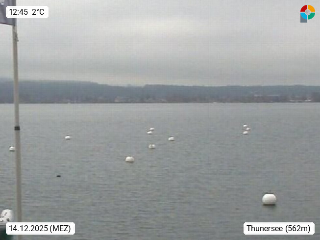 CH 3652 Hilterfingen 562m, Gemeinde im Bezirk Thun des Kantons Bern am Nordufer des Thunersee 48,3 km² im Berner Oberland. Blick von der Segelschule Thunersee gegr. 1935 der ersten Segelschule der Schweiz Richtung Südwest über den See. Präsentiert von https://www.segelschule-thunersee.ch/de/.