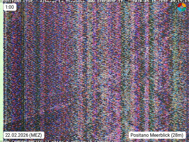 I 84017 Positano 12m, liegt am Golf von Salerno an der Amalfiküste südlich von Neapel in der Provinz Salerno in Kampanien. Blick über den Strand Richtung Westen auf die Häuser im Ort und das Tyrrhenischen Meer. Präsentiert von https://sirenuse.it/en.