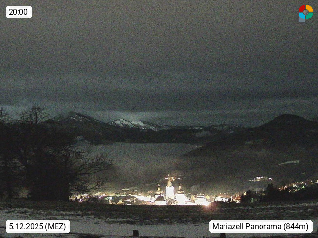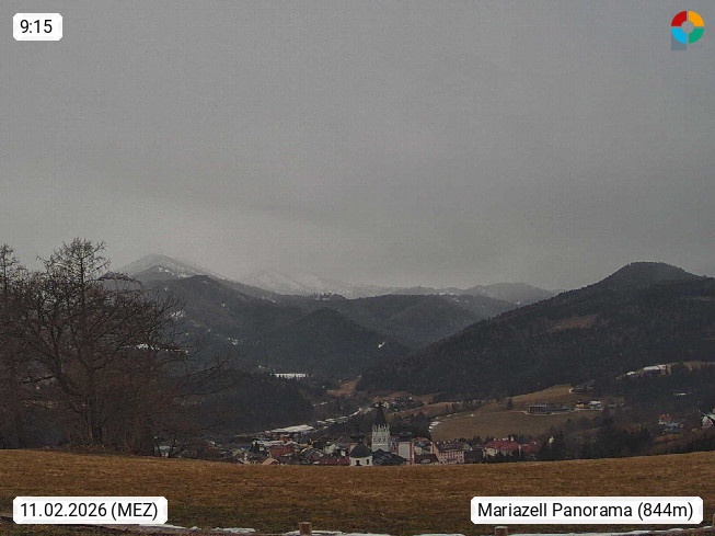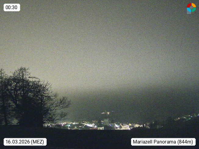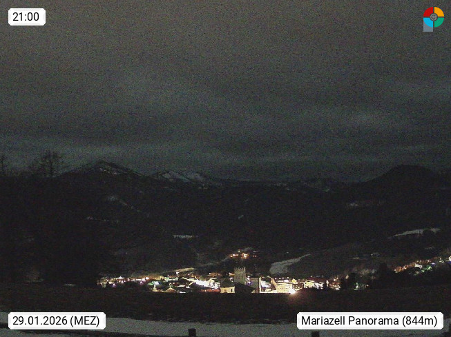 A 8630 Mariazell 868m, wichtigster Wallfahrtsort Österreichs welcher sich in der nördlichen Obersteiermark im Bezirk Bruck an der Mur befindet. Blick von der Volkssternwarte 1.008m, Richtung Westen über Mariazell mit den Türmen der Basilika über das Salzatal zum Zellerhut 1.689m und Dürnstein. Präsentiert von http://www.sbm-web.at.