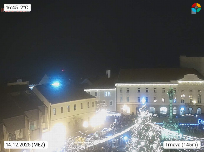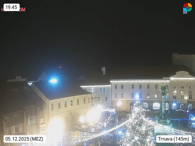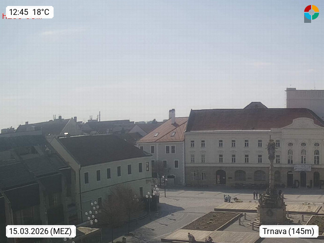 SK 91771 Trnava 146m deutsch Tyrnau ungarisch Nagyszombat, ist Hauptstadt der Region Trnavsky kraj und des Bezirkes Trnava im Westen der Slowakei. Blick auf den Hauptplatz im historischen Stadtzentrum. PROMOTED BY http://www.panocams.sk. Präsentiert von http://www.heso-com.sk.