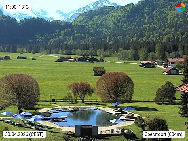 D 87561 Oberstdorf 815m, Kurort im schwäbischen Landkreis Oberallgäu in den Allgäuer Alpen, südlichste Gemeinde Deutschlands und flächenmässig drittgrösste Gemeinde Bayerns. Blickrichtung Süden zu den Allgäuer Alpen. Präsentiert von https://www.schueles.com/.