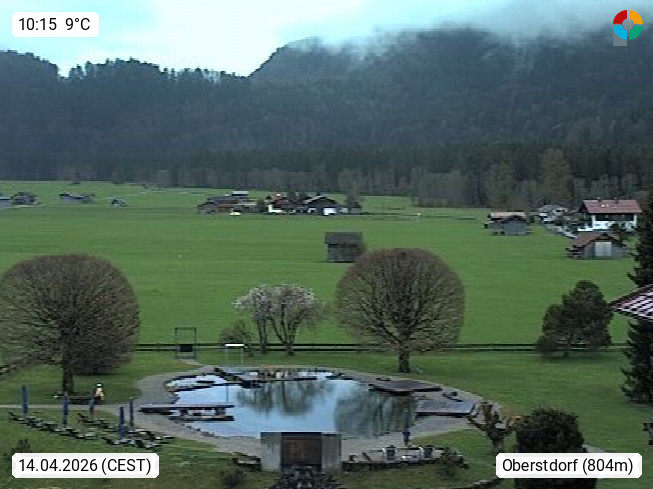 D 87561 Oberstdorf 815m, Kurort im schwäbischen Landkreis Oberallgäu in den Allgäuer Alpen, südlichste Gemeinde Deutschlands und flächenmässig drittgrösste Gemeinde Bayerns. Blickrichtung Süden zu den Allgäuer Alpen. Präsentiert von https://www.schueles.com/.