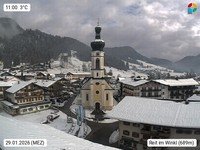 D 83242 Reit im Winkl. Blick von der Ortsmitte Richtung Wasserfall. Präsentiert von http://www.hausfeichtner.de.
