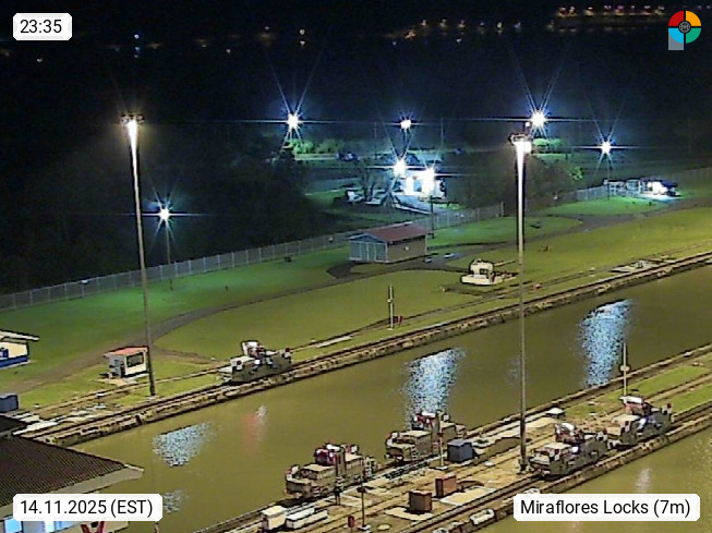 Panamakanal, Blick zur Schleusenanlage Miraflores Locks.