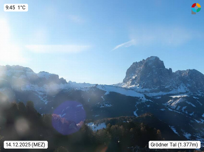 I 39047 St. Christina (Santa Cristina Valgardena) 1.430m, Blick vom Berggasthof Col Raiser 2.016m zum Langkofel 3.181m und dem Ski und Wandergebiet Ciampinoi im Grödner Tal (Val Gardena). Präsentiert von https://www.valgardena.it/.