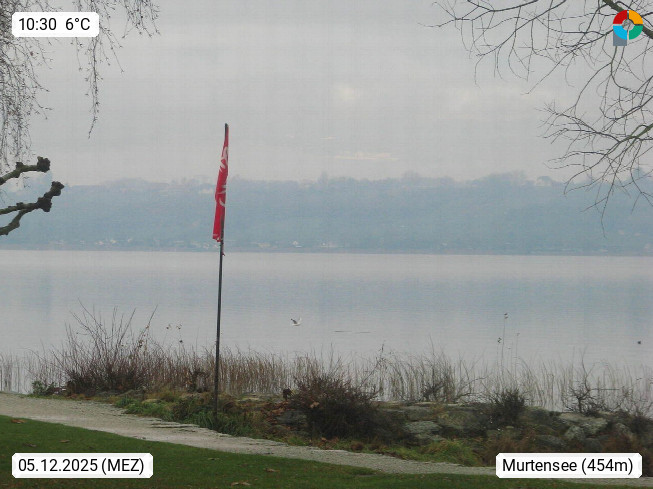 CH 3280 Murten Blick Richtung Süden über den Murtensee (Lac de Morat) 22,8km². Präsentiert von https://www.bisenoire.ch.