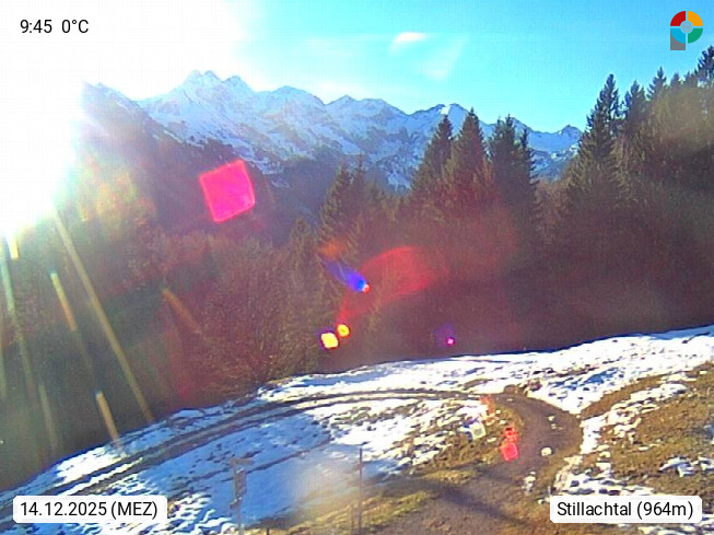 D 87561 Oberstdorf 828m, Blick von der Berghütte Hochleiten 1.200m in das Stillachtal und zum Mädelegabel 2.645m und Bockkarkopf 2.608m. Präsentiert von https://www.hochleite.de/.