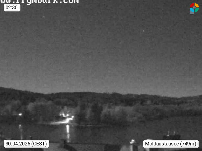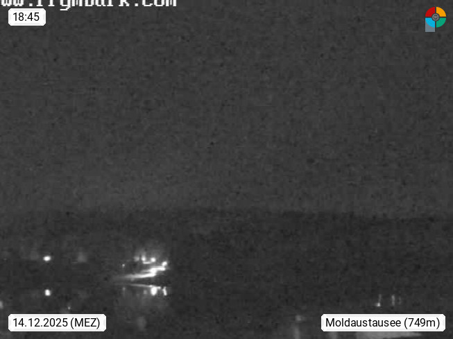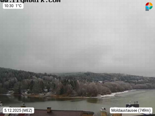 Lipno See (Lipno Udolni nadrz) 558m, Blick Richtung Westen über den Moldau Stausee (Lipno Stausee) 46,5 km² an der Grenze zu Österreich. Präsentiert von https://www.frymburk.com/rekreace/.