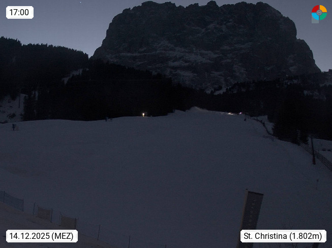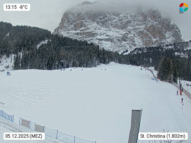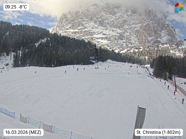I 39047 St. Christina in Gröden (Santa Cristina Valgardena) 1.430m, Blick vom Plan de Gralba 1.800m Richtung Süden zum Ski und Wandergebiet Piz Sella und dem Langkofel 3.181m im Grödner Tal (Val Gardena). Präsentiert von https://www.valgardena.it/.