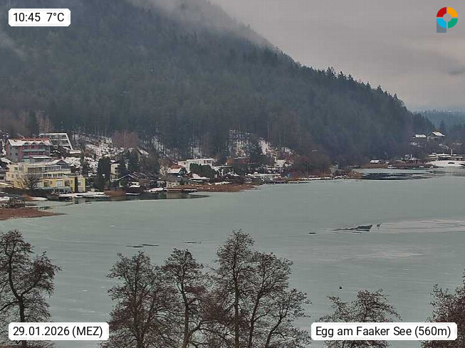 A 9580 Egg am Faakersee 570m am Nordufer des Sees. Blick in östlicher Richtung zum Ferienort Egg am Faaker See 2,2 km², mit dem Tabor 725m. Präsentiert von https://www.visitvillach.at/.