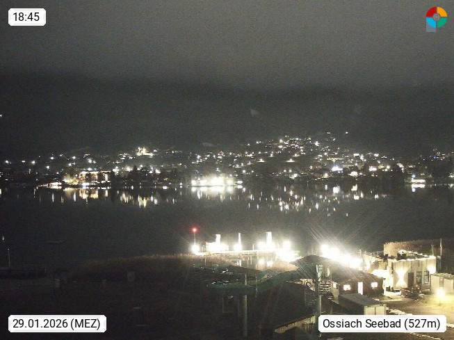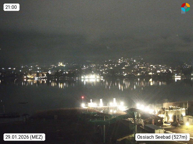 A 9570 Ossiach 510m, Gemeinde am Südufer des Ossiacher Sees. Blick über das Seebad am Ossiacher See in nördlicher Richtung. Präsentiert von https://www.visitvillach.at.