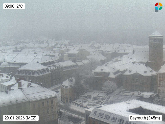 D 95444 Bayreuth 340m, Festspielstadt und kreisfreie Stadt im bayerischen Regierungsbezirk Oberfranken. Panoramablick vom Rathaus in westlicher Richtung über die Maximilianstraße in der Bayreuther Fußgängerzone. Präsentiert von https://www.tmt.de/.