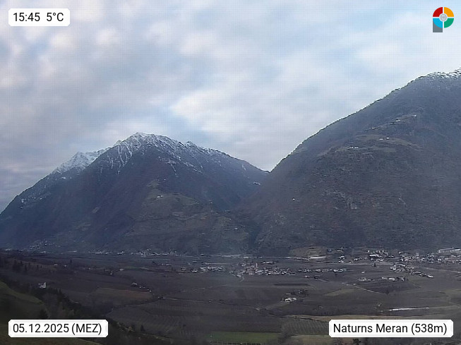 I 39025 Naturns (Naturno) 560m bei Meran (Merano), im Bezirk Burggrafenamt (Burgraviato). Blick vom Hotel Lindenhof zum Naturpark Texelgruppe (Gruppo Tessa) dem grössten Naturpark von Südtirol (Alto Adige) rund 334 km², in südlicher Richtung zur Hohen Warte 2.607m. Präsentiert von https://www.lindenhof.it/.