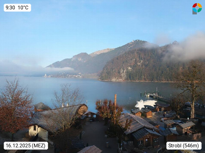 A 5350 Strobl am Wolfgangsee 543m, Gemeinde im Flachgau am Wolfgangsee im Salzburger Salzkammergut. Blick vom Dorfplatz Richtung Norden zur Seepromenade und dem Wolfgangsee 12,8 km². Präsentiert von https://wolfgangsee.salzkammergut.at.