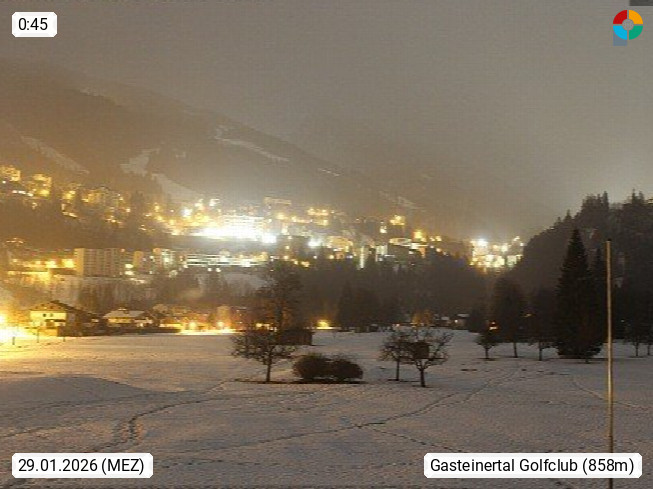 A 5630 Bad Hofgastein 850m, Blick vom Clubhaus des Golfclub Gastein Richtung Süden nach A 5640 Bad Gastein. Präsentiert von https://www.gasteinertal.com/.