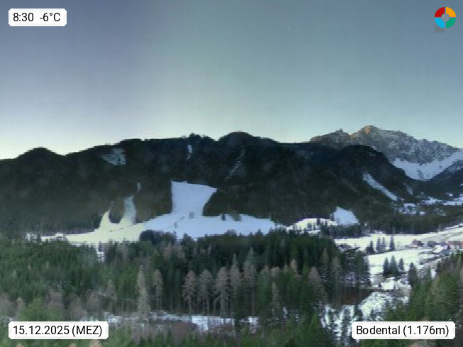 A 9170 Ferlach südlichste Stadtgemeinde Österreichs. Panoramablick über das Bodental, slow. Boden, einem entlegene Hochtal in den Karawanken im Süden von Kärnten. im Hintergrund der Gipel des Vertatscha 2.180 m, einem Grenzberg zwischen Österreich und Slowenien. Präsentiert von https://www.familienhof.at/.