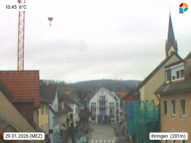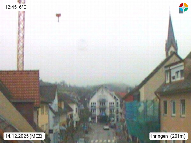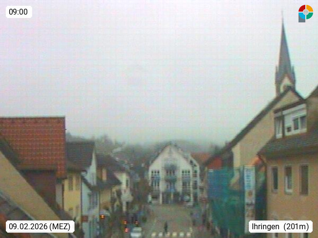 D 79241 Ihringen 202m, liegt im Landkreis Breisgau Hochschwarzwald, im Südwesten Baden Württembergs am Südhang des Kaiserstuhls. Ihringen ist bekannt als Weinanbauort und "wärmster Ort Deutschlands". Blick vom Gemeindeamt über die Bachenstraße Richtung Nord. Präsentiert von https://www.ihringen.de/start.