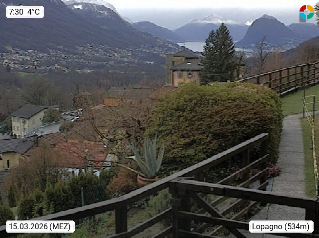 CH 6950 Capriasca 600m, Blick von Ort Lopagno Richtung Süden auf die Stadt Lugano 273m mit Luganersee und den Damm von Melide. Präsentiert von https://www.webticino.ch/.