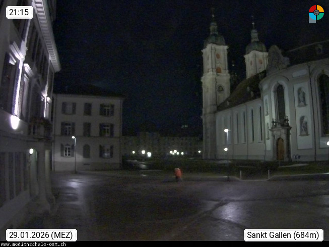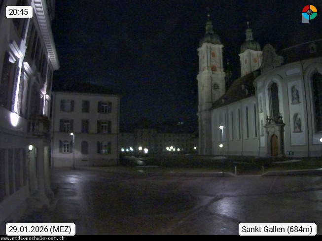 CH 9000 St. Gallen, Blick vom Haus zur Rose in der Altstadt auf das Kloster und den Klosterplatz. UNESCO Weltkulturgut und grösster geschlossener Platz der Schweiz. Präsentiert von https://www.klosterplatz.ch/index.php.