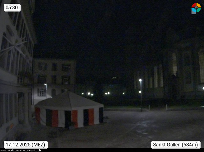 CH 9000 St. Gallen, Blick vom Haus zur Rose in der Altstadt auf das Kloster und den Klosterplatz. UNESCO Weltkulturgut und grösster geschlossener Platz der Schweiz. Präsentiert von https://www.klosterplatz.ch/index.php.
