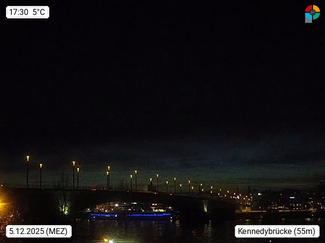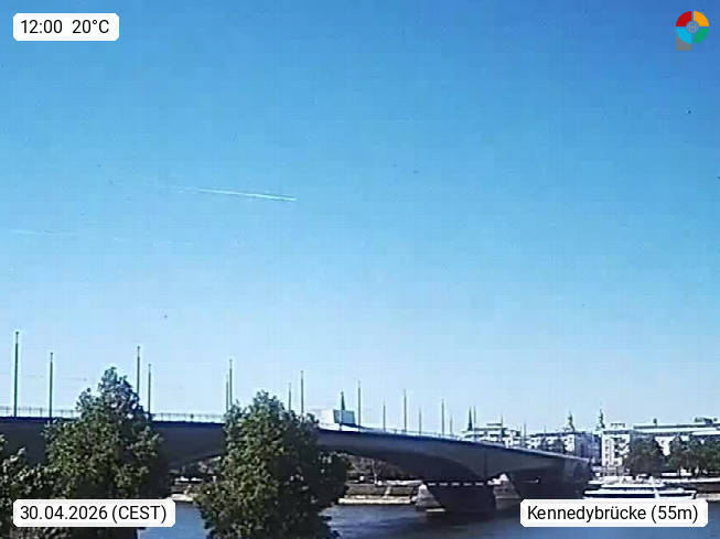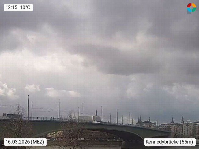 D 53225 Bonn 60m, Großstadt im Süden von Nordrhein Westfalen an beiden Ufern des Rhein und bis 1999 Regierungssitz der Bundesrepublik Deutschland. Blick von Bonn Beuel Rheinaufwärts über den 400 Meter breiten Rhein zur Kennedybrücke mit direktem Blick zum anderen Ufer. Präsentiert von https://www.brodesser.de/.