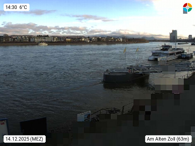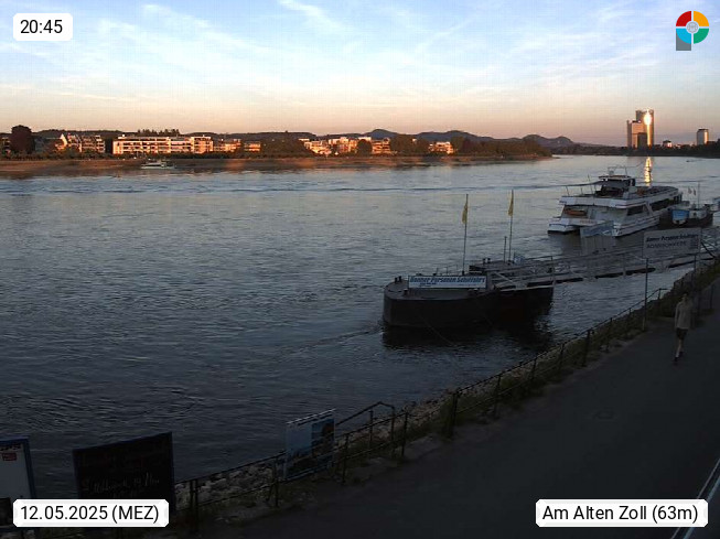 D 53111 Bonn 60m, Großstadt im Süden von Nordrhein Westfalen an beiden Ufern des Rhein und bis 1999 Regierungssitz der Bundesrepublik Deutschland. Blick vom Brassert Ufer am Alten Zoll über die Rheinpromenade Richtung Südosten über den Rhein flussaufwärts. Präsentiert von https://www.bonnschiff.de/.