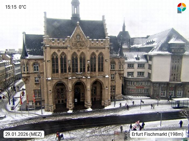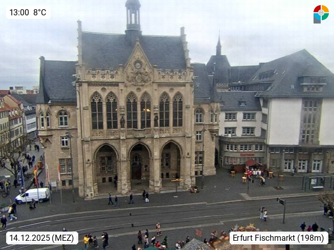 D 99084 Erfurt 195m, Landeshauptstadt des Freistaates Thüringen am Südrand des Thüringer Beckens im weiten Tal der Gera. Blick auf den Fischmarkt welcher als historischer Mittelpunkt der Stadt gilt. Präsentiert von https://www.erfurt.de/ef/de/index.html.