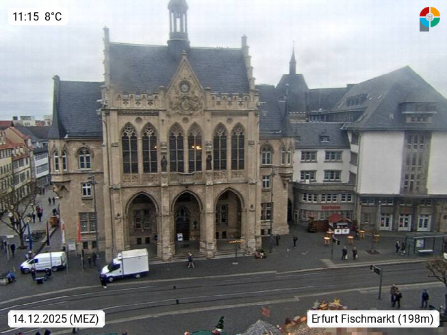 D 99084 Erfurt 195m, Landeshauptstadt des Freistaates Thüringen am Südrand des Thüringer Beckens im weiten Tal der Gera. Blick auf den Fischmarkt welcher als historischer Mittelpunkt der Stadt gilt. Präsentiert von https://www.erfurt.de/ef/de/index.html.